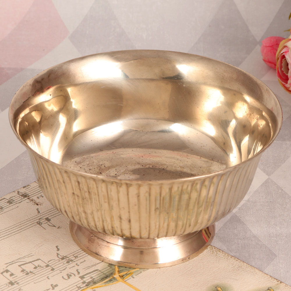 Buy a brass bowl online that is a masterpiece of craftsmanship in English Art. Handcrafted by highly talented artisans, it boasts a luxurious, shiny golden finish that radiates opulence. Crafted from high-quality brass, this bowl is a true testament to the artisanal excellence that defines English craftsmanship. Versatile in its appeal, this brass bowl can find a place of pride in various settings. Whether it graces your home, office, restaurant, hotel, or cafe, its timeless beauty and elegant design will captivate all who behold it. This magnificent piece can also become a valuable addition to your vintage collection, with the potential to be displayed in museums or exhibitions, showcasing its historical and artistic significance. Furthermore, it makes for an exceptional gift to convey your affection on special, festive, or auspicious occasions. Whether you're gifting it to your family, friends or relatives or acquiring it for yourself, this brass bowl promises to infuse any space with a touch of sophistication and history.