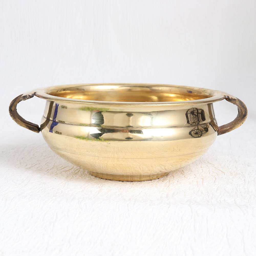 Enhance your interior decor with our exquisite Brass Urli Pot that is a masterpiece crafted by highly skilled and experienced Indian artisans. This captivating piece boasts a shiny golden finish that radiates elegance and sophistication, making it a perfect addition to any setting. Handmade with meticulous attention to detail, this urli pot showcases the exceptional craftsmanship and dedication of our artisans. It is fashioned from high-quality brass, ensuring durability and a timeless charm that will last for generations. The urli pot features two delicately designed handles that add a touch of functionality and grace. Versatile in its use, it can effortlessly enhance the ambiance of your home, office, restaurant, hotel, cafe, or shop. Fill it with water and float vibrant flowers for a stunning centerpiece that exudes tranquillity and beauty. This urli pot is not just a decorative item but also a symbol of auspiciousness and tradition in Indian culture. Looking for the perfect gift? Our Brass Urli Pot is an ideal choice for special, festive, or auspicious occasions.