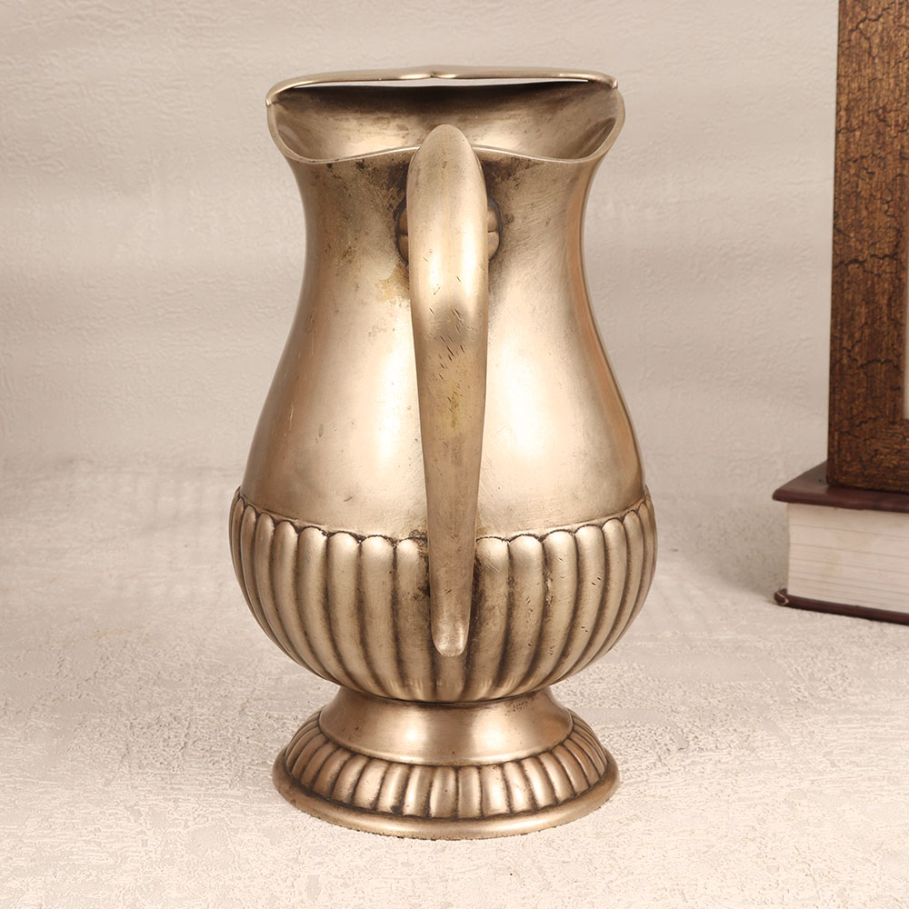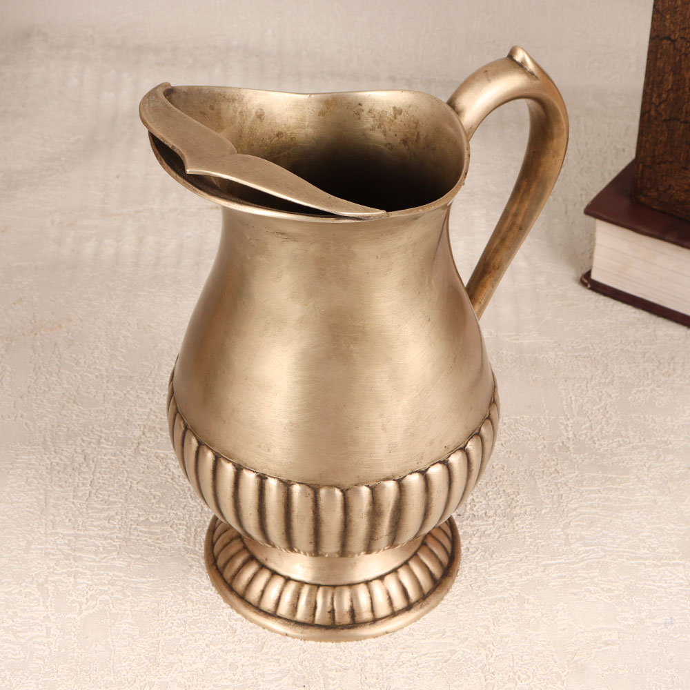 Enhance your decor with our Vintage White Metal Jug that is a captivating blend of timeless elegance and artisanal craftsmanship. Handmade by highly skilled and experienced Indian artisans in the distinguished English Art style, this jug seamlessly combines functionality with aesthetic appeal. Crafted from high-quality white metal, its antique silver finish exudes an aura of vintage charm, making it a perfect addition to any space. The jug's versatile design allows it to double as a unique flower pot, adding a touch of nature to your surroundings. Ideal for home, office, restaurant, hotel, or cafe settings, it effortlessly enhances the ambiance with its classic allure. Its graceful figure not only serves as a delightful decoration but also as a conversation starter. This masterpiece is more than just a decor item, it's a collector's dream. Adding it to your vintage collection will infuse your space with character and history. Beyond personal indulgence, this Vintage White Metal Jug makes for an exquisite gift for your family, friends or relatives on special, festive, or auspicious occasions, creating lasting memories and treasured moments.