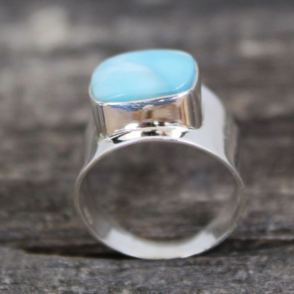 The Handmade Silver Plated Brass Ring with Larimar Gemstone for Men and Women is a serene expression of artisan craftsmanship and natural beauty. Crafted in brass and finished with sleek silver plating, this ring features a soothing larimar gemstone admired for its soft blue tones reminiscent of tranquil waters. Compact and balanced, it’s designed for comfortable everyday wear across styles and genders. The result is a versatile piece that feels modern, calming, and timeless.