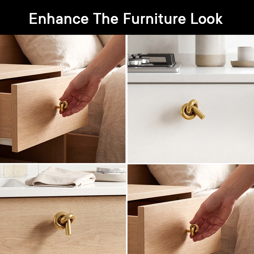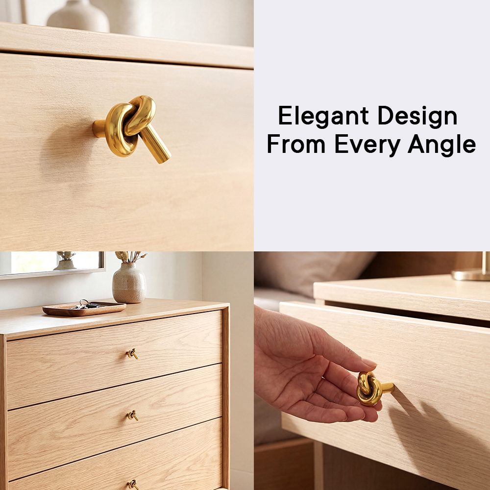 If you're looking for a quick and simple way to transform your kitchen cabinets, bathroom drawers, or bedroom wardrobes, the Solid Golden Brass Knot Cabinet Knob is the perfect solution. Its elegant knot design and luxurious golden finish offer a subtle yet impactful upgrade to any piece of furniture, giving your home a fresh and sophisticated look.