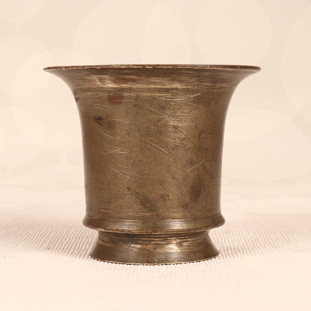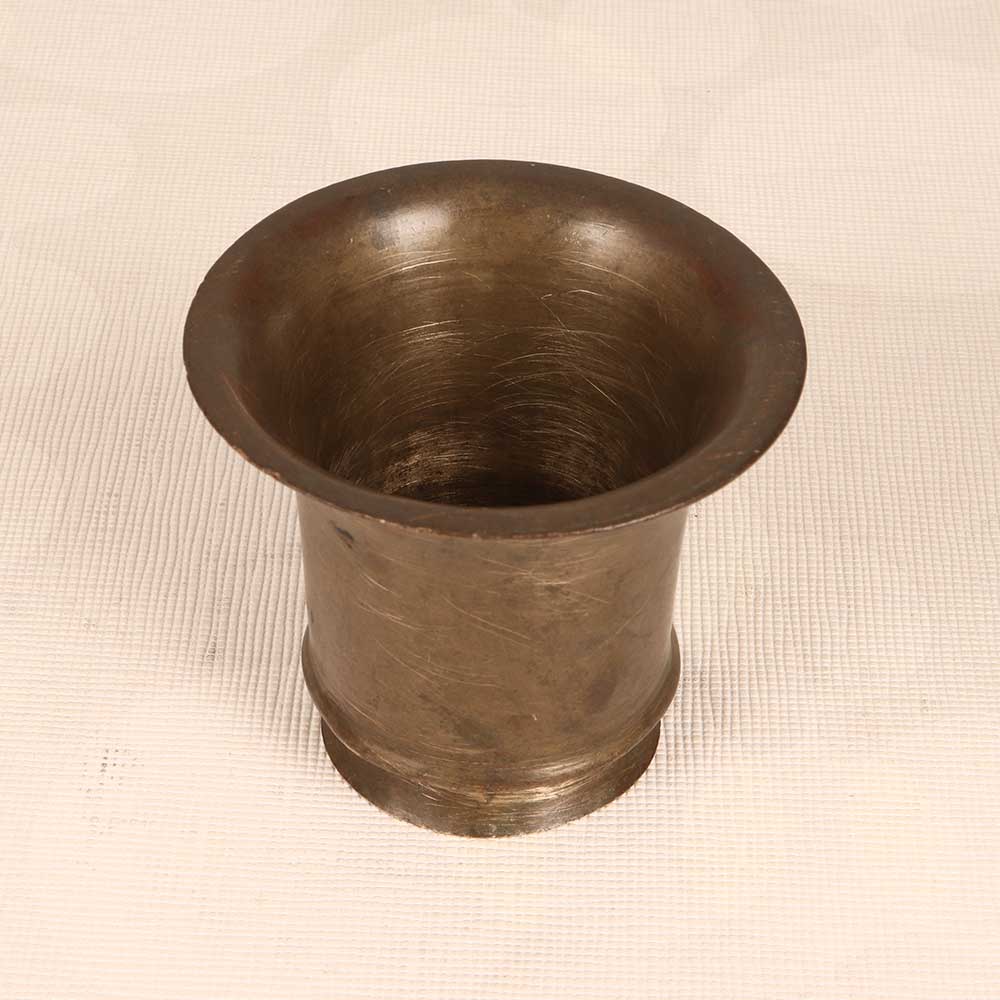Immerse yourself in serenity with the Vintage Brass Holy Water Cup. This elegant cup in South Indian artistic style brings graceful vibes to your home. Crafted from solid brass, it features delicate etchings reminiscent of Indian temples. The wide, curved brim accommodates flower arrangements or petals to adorn your space. Place this cup on a shelf, mantle or table to uplift the ambiance. Keep it in your meditation area filled with water or sandalwood paste to focus your practice. The Vintage Brass Holy Water Cup makes a meaningful addition to a spiritually inspired home. Its plain brown brass finish gives an earthy, grounded feel. For those drawn to Indian culture or seeking a unique home decor accent, this special cup delivers tranquil style. Let its essence elevate your home and calm your spirit.