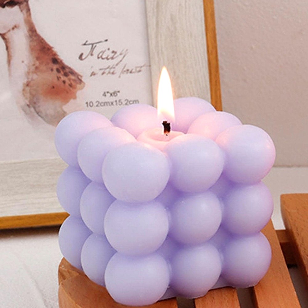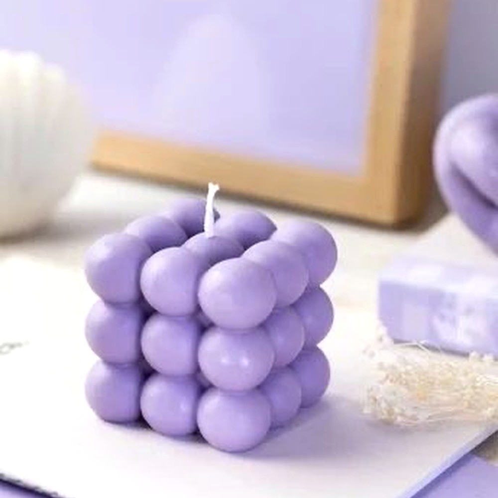 This bubble candle set is crafted from soy wax and finished in a soothing lavender tone that brings softness and balance to interior spaces. The sculpted cube form adds a modern decorative element while remaining suitable for regular use. Offered as a coordinated set of two, each piece is packed and quality checked by Indianshelf.