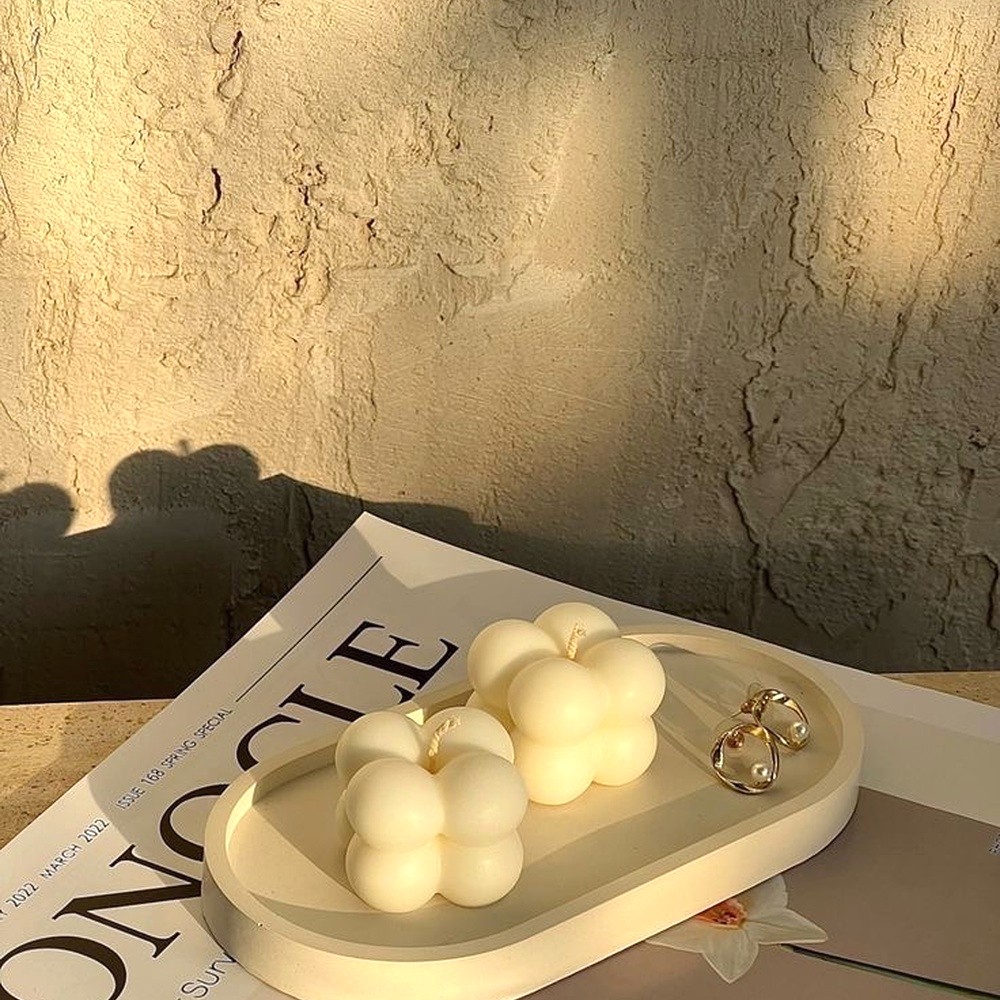This small bubble candle set is made from soy wax and designed in a compact sculptural form that suits subtle dcor styling. Finished in a clean white shade, these candles add softness to interiors while remaining practical for everyday use. Offered as a coordinated set of four, each piece is packed and quality checked by Indianshelf.