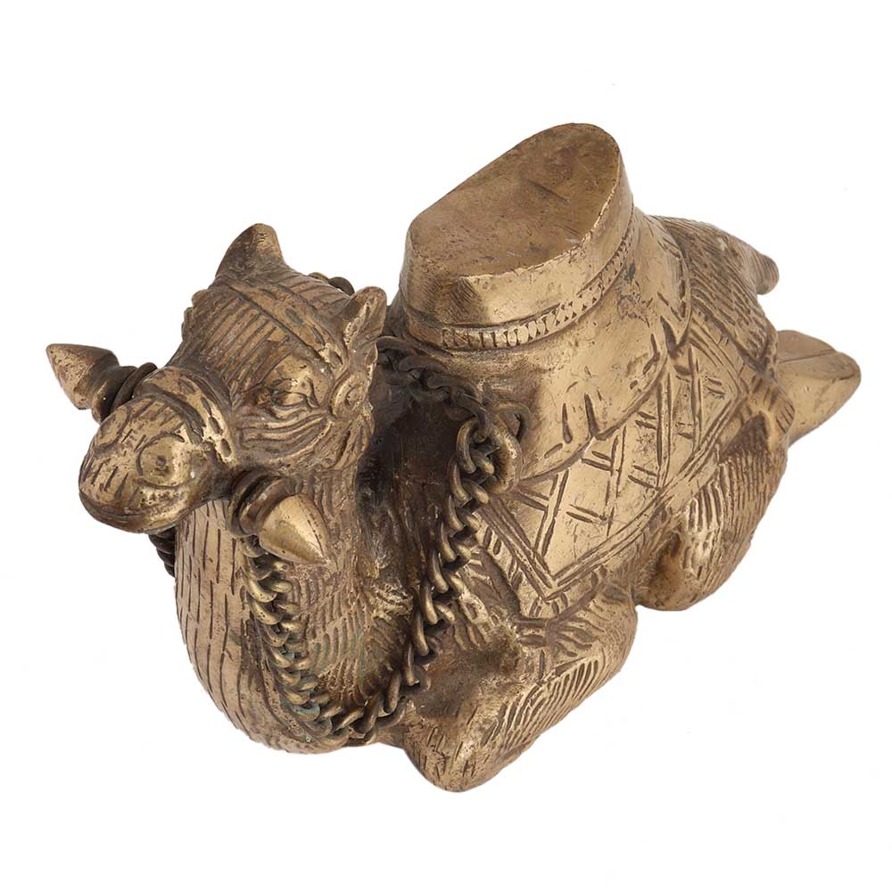 This exquisite brass statue of a camel resting after a long day has detailed carvings that make it look very realistic and unusual. It is the ideal diwali, wedding, new year, housewarming gift.