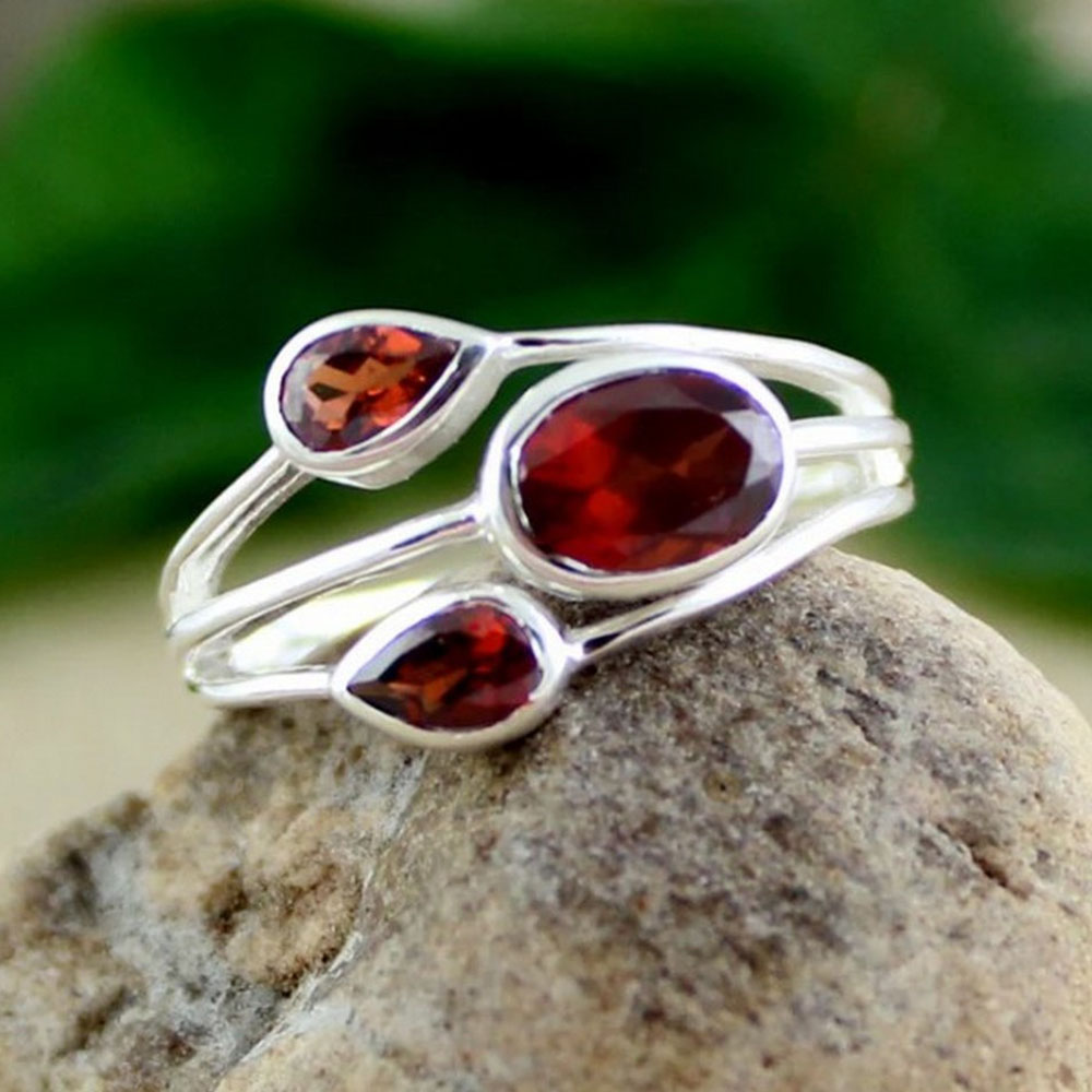 Delight in the allure of our handmade three red garnet ring 925 sterling silver boho jewelry, where three natural red garnet stones, 925 sterling silver and boho come together to create a classic beauty. This ring is for minimalist fans, each piece reflecting individuality and care. Packed & quality-checked by Indianshelf.