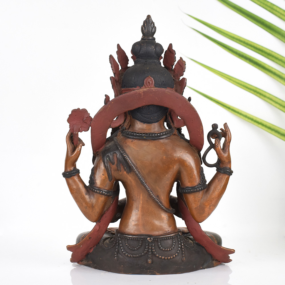 - Depicts the compassionate deity Chenrezig in a serene sitting position