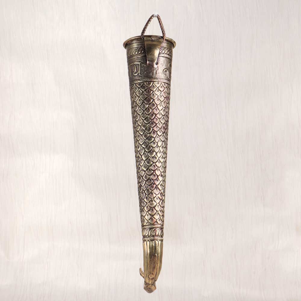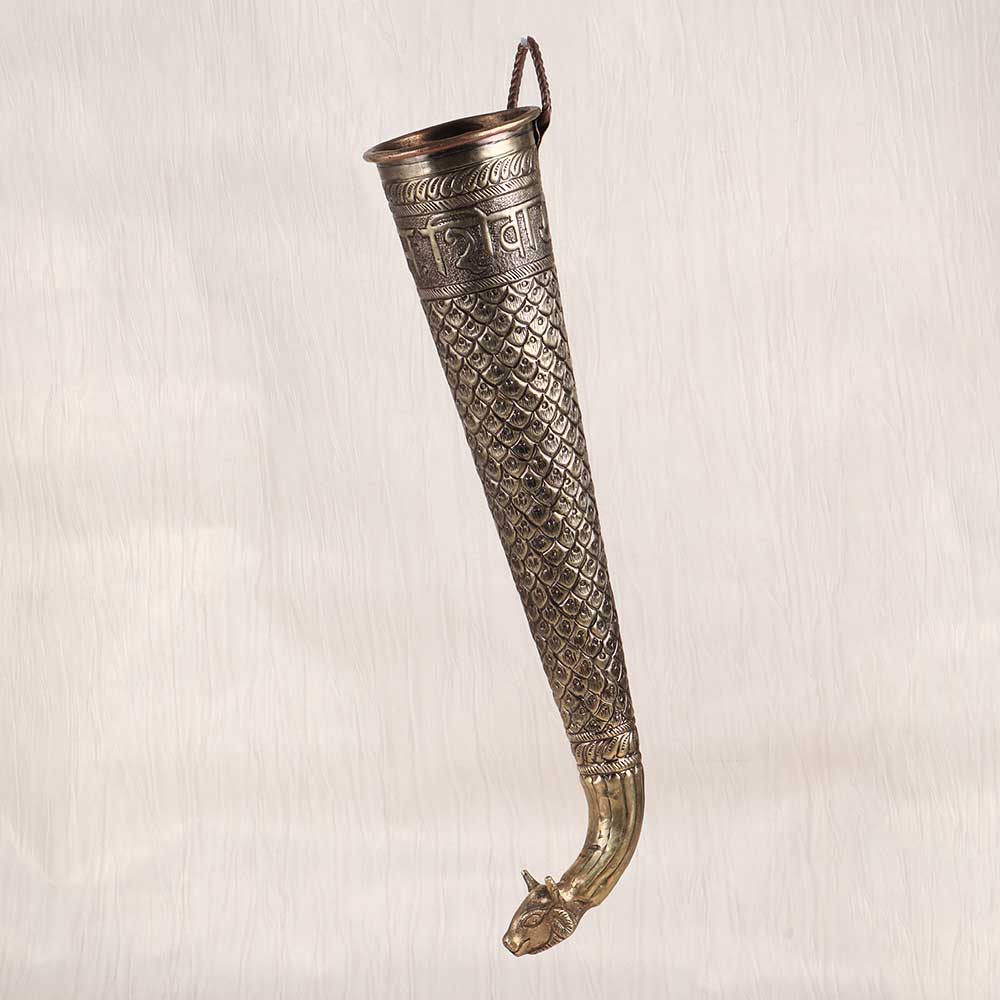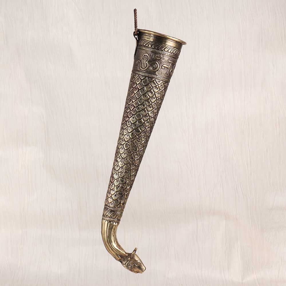 Embrace centuries of Hindu tradition with this handcrafted vintage brass Nandi head pipe. This detailed Nandi head comes alive with textures that reflect generations of ceremonial use. This Nandi head spout allows you to recreate historic Hindu ceremonies that honor Lord Shiva. Or display it as an accent piece that invokes divinity through artistic detail and cultural spirit. However, you use it, this vintage Nandi head pipe connects you to timeless tradition and infuses spaces with sacred ambiance.