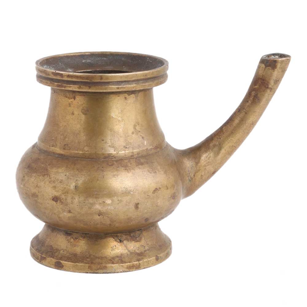 This traditional brass kindi pot is basically a holy water pot with a long spout. Use it for table decoration and as a planter pot.