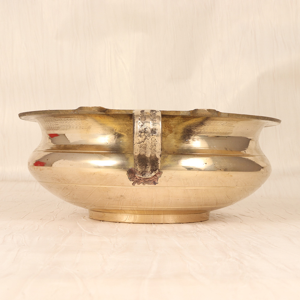 Elevate your living space with the captivating essence of South Indian art. Our exquisite brass urli, crafted with meticulous attention to detail, emanates a warm, golden glow that will instantly transform the ambiance of any room. Immerse yourself in the rich cultural heritage of South India with this stunning brass urli. More than just a decorative item, it is a work of art that showcases the remarkable craftsmanship of skilled artisans. Display it on a mantel, side table, or shelf, and let its timeless beauty captivate all who enter your space. Whether you're a collector of Indian art, a lover of unique home decor, or simply seeking to add a touch of elegance to your surroundings, this brass urli is the perfect choice. Discover the alluring beauty of this exceptional piece and let it transform your living space into a celebration of South Indian artistry.