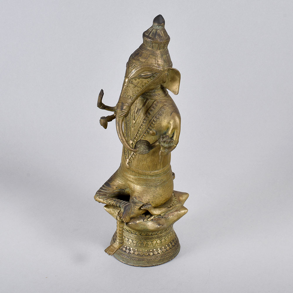 - Exquisitely crafted brass statue of Lord Ganesha seated on a Lotus in Tribal Art style