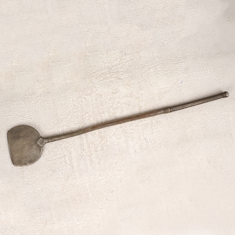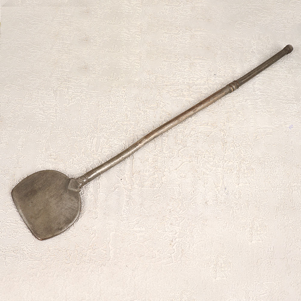 A Vintage Brass Cooking Flat Spoon which is a timeless piece that seamlessly blends functionality with aesthetic charm. Crafted by highly talented Indian craftsmen, this cooking utensil bears the hallmarks of traditional craftsmanship and is fashioned from high-quality brass. Boasting an antique grey finish, it exudes an air of vintage elegance that transports you to a bygone era of culinary artistry. While it was originally designed for culinary endeavours, we recommend repurposing this vintage treasure for decorative purposes only, preserving its historical allure. Whether adorning your home, office, restaurant, hotel, or cafe, this handmade spoon becomes a captivating focal point. Its antique patina and intricate detailing make it a perfect addition to any vintage collection. Give the gift of nostalgia by presenting this vintage brass spoon to your family, friends or relatives on special, festive, or auspicious occasions. With its unique blend of history, craftsmanship, and aesthetic appeal, this piece stands as a testament to the enduring beauty of artisanal creations.