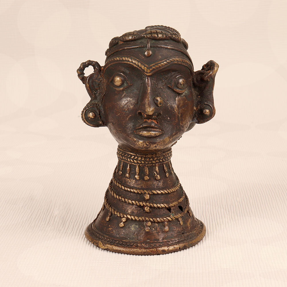 Embrace the rich cultural heritage with our Vintage Brass Gauri Head Statue which is a masterpiece meticulously crafted by highly skilled Indian artisans in Tribal Art. This stunning piece showcases a dark finish, adding an aura of mystique and antiquity to any space. Handmade from high-quality brass, the statue reflects the artistry and craftsmanship passed down through generations. Ideal for home, office, restaurant, hotel, or cafe decor, the Gauri Head Statue is a symbol of divine grace and timeless elegance. Its intricate details capture the essence of traditional Indian art, making it a captivating addition to any vintage collection. The statue is versatile, seamlessly blending into various settings. Perfect for gifting, this statue holds sentimental value and cultural significance, making it an exceptional choice for special, festive, or auspicious occasions. Share the beauty of Indian craftsmanship and spirituality by presenting this Vintage Brass Gauri Head Statue to your family, friends or relatives.