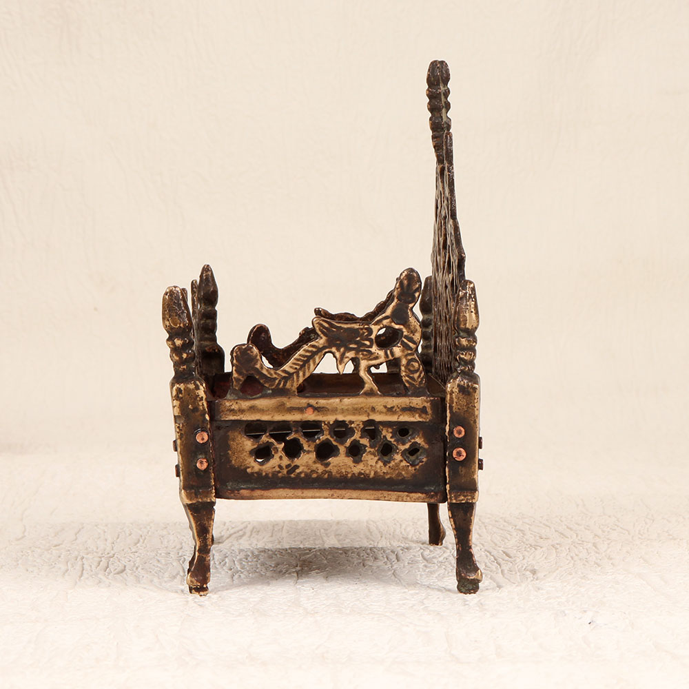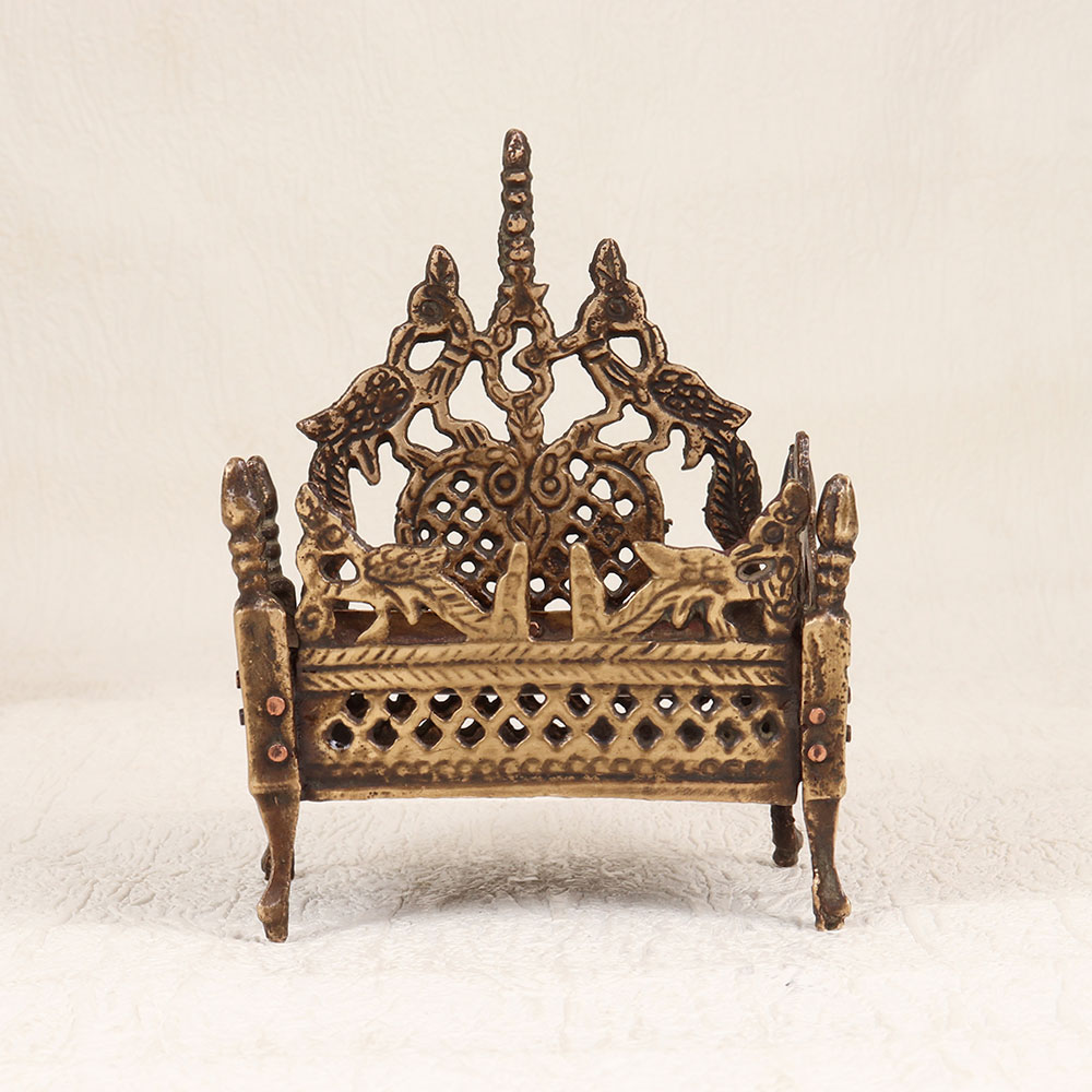 Buy a Vintage Brass God's Singhasan online that is a masterpiece handcrafted by talented Indian artisans. This celestial creation showcases an antique brown finish, reminiscent of a bygone era, adding an aura of timeless charm to any space. Crafted from high-quality brass, this Singhasan reflects the rich cultural heritage of India, embodying the craftsmanship of generations. The intricate detailing and traditional design make it a perfect addition to your home, office, restaurant, hotel, or cafe's prayer room, creating an atmosphere of spiritual serenity. The versatility of this piece extends beyond its sacred purpose; it seamlessly integrates into vintage collections, becoming a cherished symbol of artistry and devotion. The Singhasan's resplendent beauty transcends boundaries, making it an ideal gift for your family, friends or relatives on special, festive, or auspicious occasions. Whether as a token of appreciation or a gesture of divine blessings, this Vintage Brass God's Singhasan is a testament to the enduring traditions and the artistry that brings divinity into every detail.