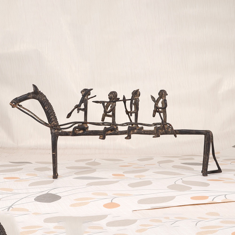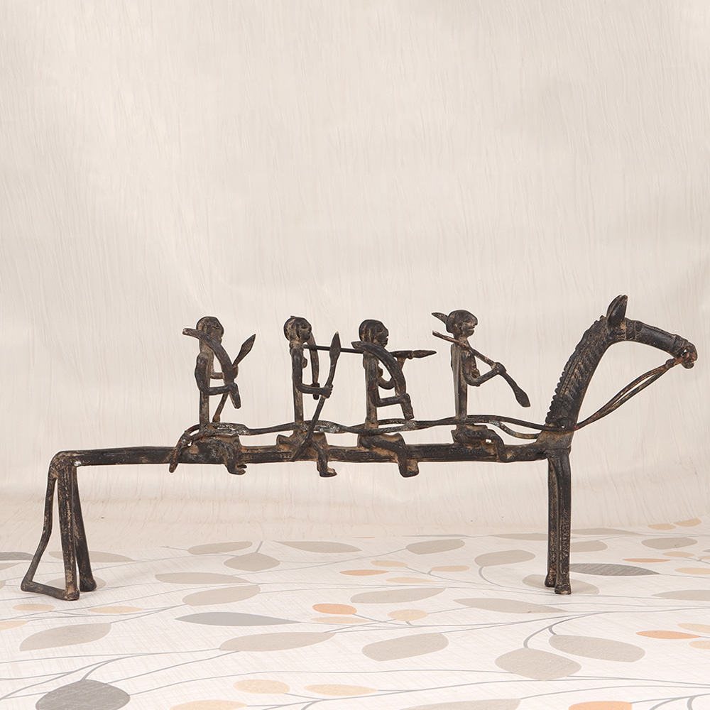 Unleash the captivating power of the ancient tribes with the Vintage Brass Tribal Long Horse with Four Warriors. This stunning piece is a masterful fusion of artistry, history, and cultural significance, crafted to transport you to a realm of bold exploration and unwavering strength. This Tribal Long Horse is more than just a decorative piece - it's a testament to the enduring spirit of the ancient world. Imagine the battles it has witnessed, the journeys it has undertaken, the legends it has the power to inspire. With this stunning work of art in your home, you'll be surrounded by the strength and resilience of the tribes, their stories forever etched in brass. Whether you're a collector of fine cultural artifacts or simply seeking to add a touch of global flair to your decor, the Vintage Brass Tribal Long Horse with Four Warriors is a must-have. Elevate your living space and ignite your imagination with this truly remarkable, conversation-starting centerpiece that will transport you to a realm of rich history and unbridled adventure.