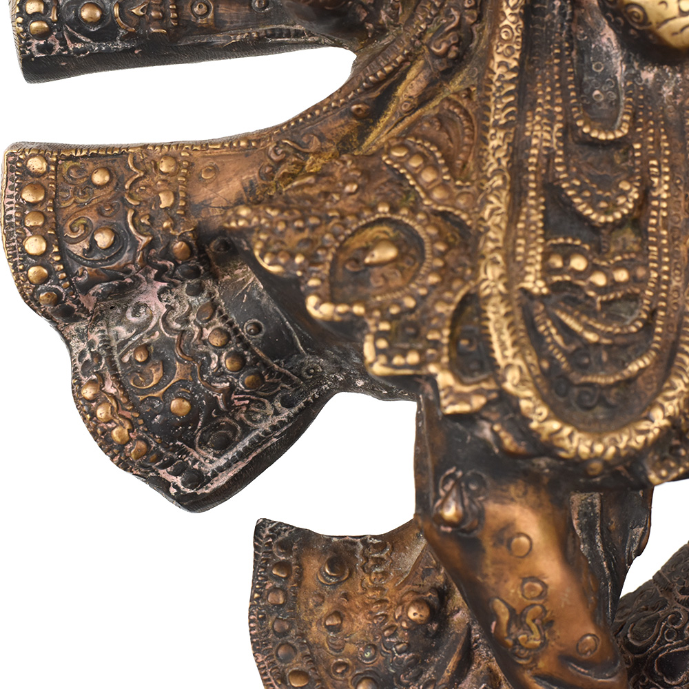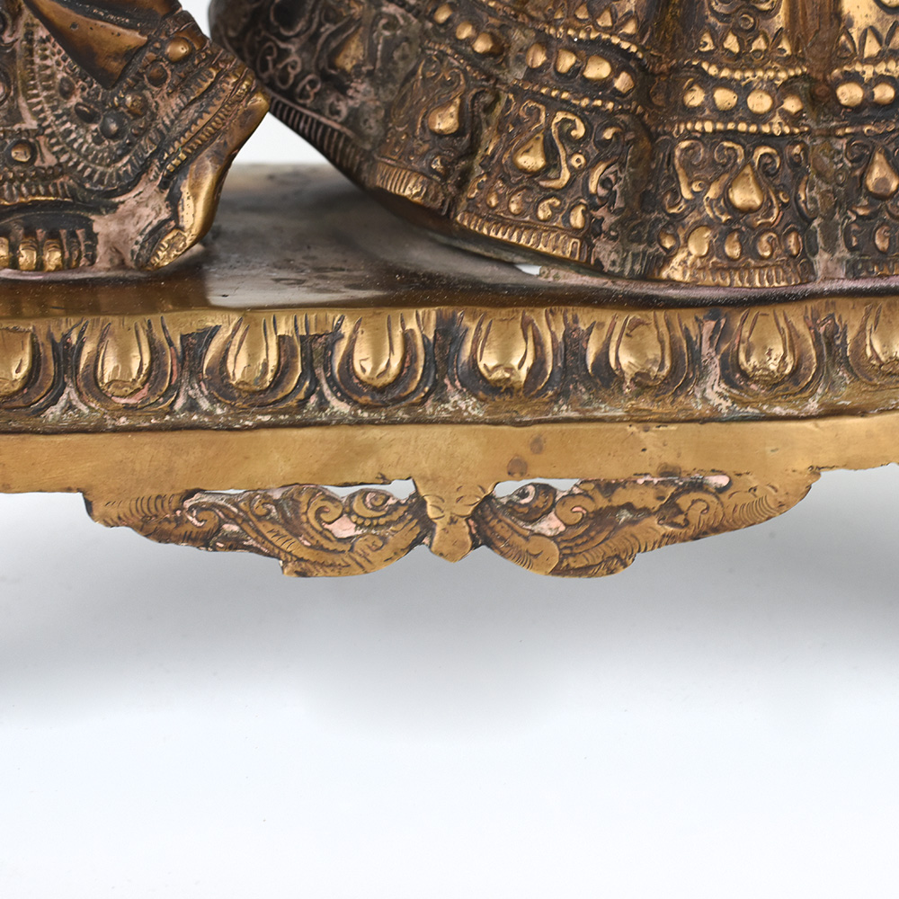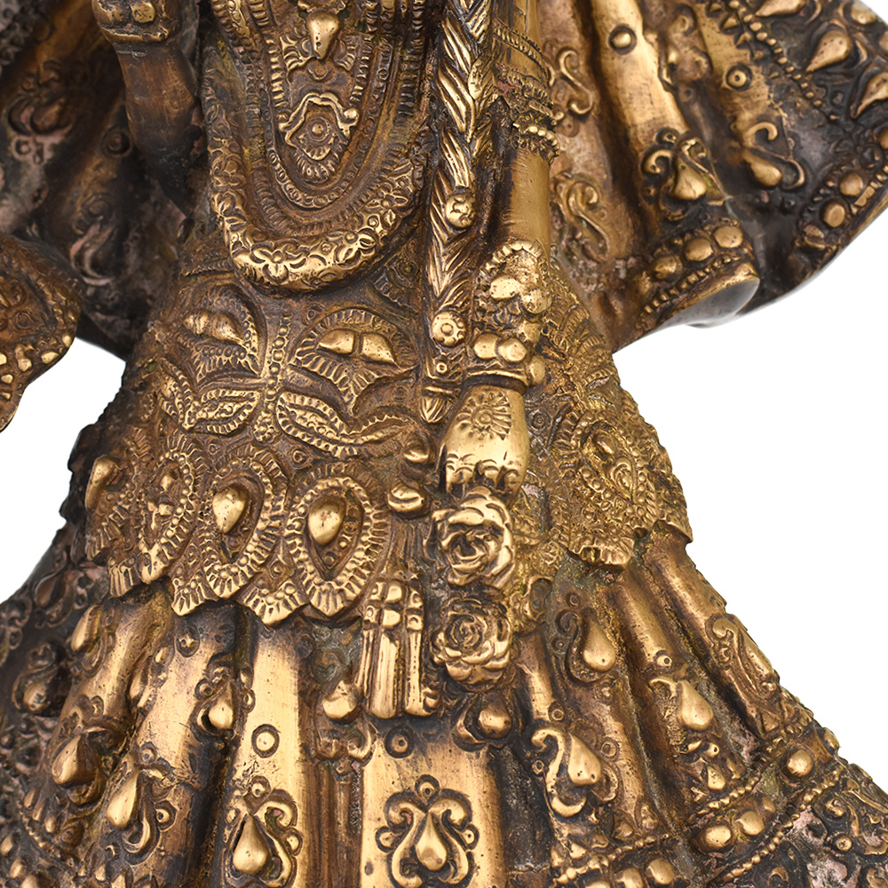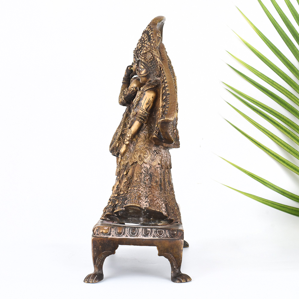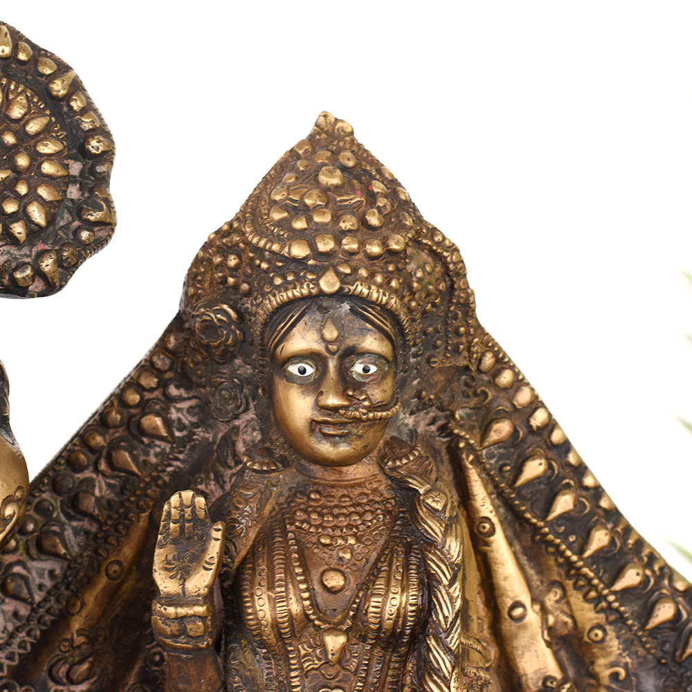 Bring the divine love of Lord Krishna and Radha into your home with this exquisite vintage brass statue. Crafted with meticulous detail by skilled artisans in Northern India, this stunning piece will captivate all who behold it. This vintage brass statue celebrates the eternal, transcendent love between Lord Krishna and his divine consort, Radha. Their intertwined embrace radiates a palpable spiritual energy, inviting you to bask in the glow of their divine union. As you gaze upon this exquisite work of art, you'll be transported to the lush forests of Vrindavan, where Krishna and Radha's love blossomed. Invite the blessings and positive energy of this revered Hindu deity into your sacred space. Whether you're a devoted Krishna devotee or simply appreciate fine Indian art, this vintage brass statue will elevate your décor and nourish your soul. Display it proudly in your prayer room, meditation corner, or any area that calls for a touch of timeless, spiritual beauty.
