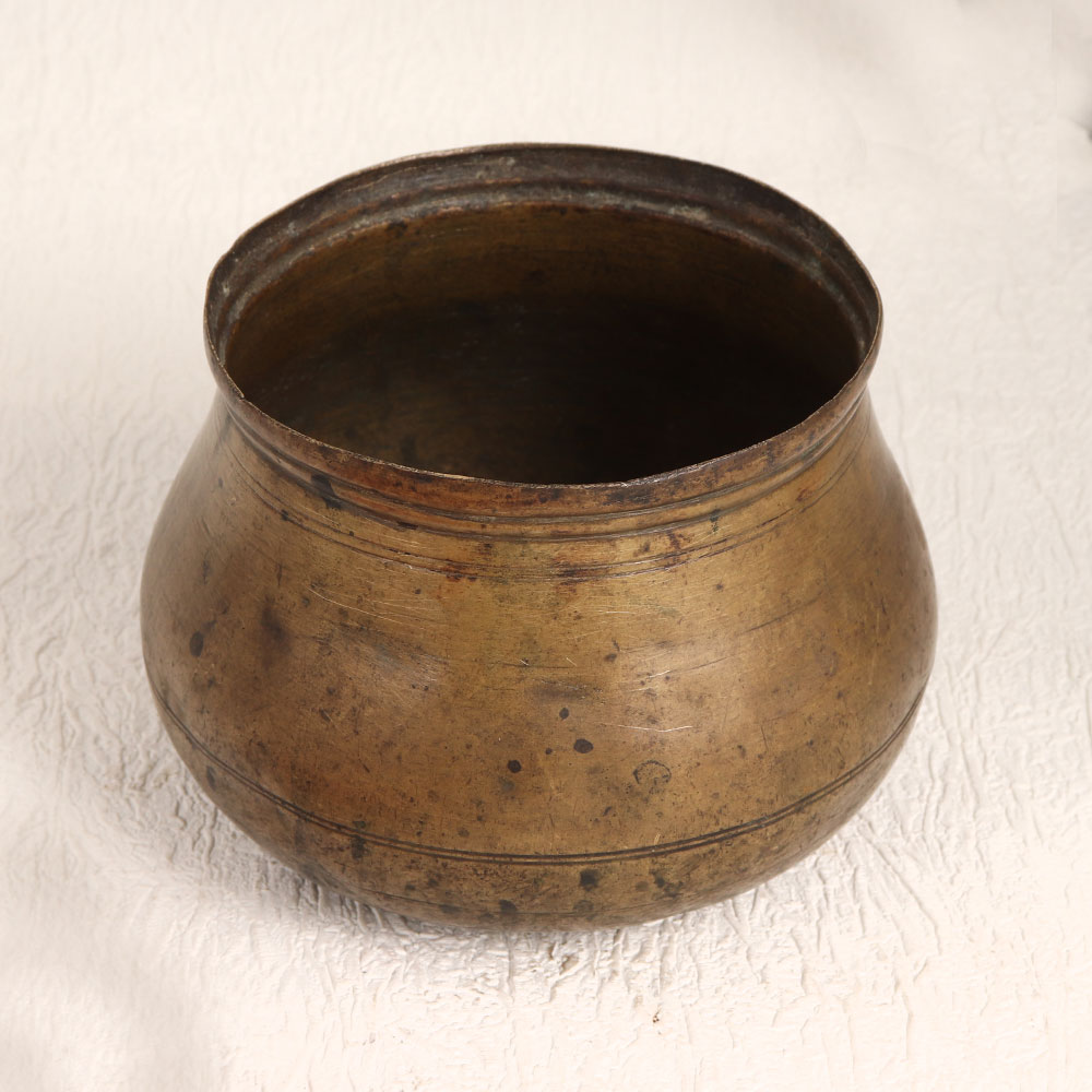Buy a Vintage Brass Rice Measurement Pot online that is a true testament to the rich craftsmanship of skilled Indian artisans. Handmade with meticulous attention to detail, this piece showcases the timeless beauty of South Indian Art, harking back to an era of artistry and precision. Crafted from high-quality brass and finished in a warm antique brown hue, this pot exudes an air of vintage charm and authenticity. Its unique design, reminiscent of an antique rice measurement pot, adds a touch of nostalgia to any setting. Versatility is key with this piece, as it can seamlessly adorn your home, office, restaurant, hotel, cafe, or shop. As a decorative flower pot, it lends a touch of elegance to your space, infusing it with an old-world charm. Furthermore, this remarkable pot makes an excellent addition to your vintage collection or a captivating exhibit at special events and exhibitions. Celebrate the joy of giving by presenting this pot to your family, friends or relatives on special, festive, or auspicious occasions. It is not just a gift, it's a piece of history, a token of artistry, and a symbol of your appreciation for the finer things in life.