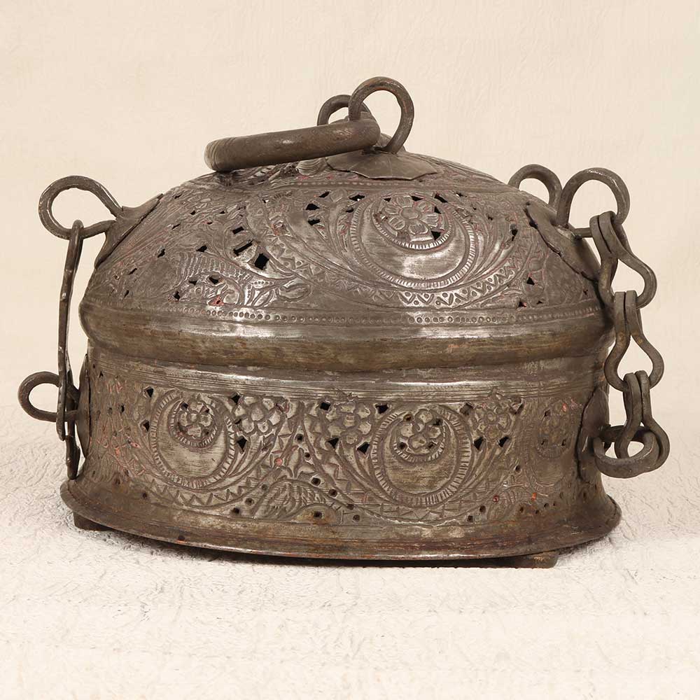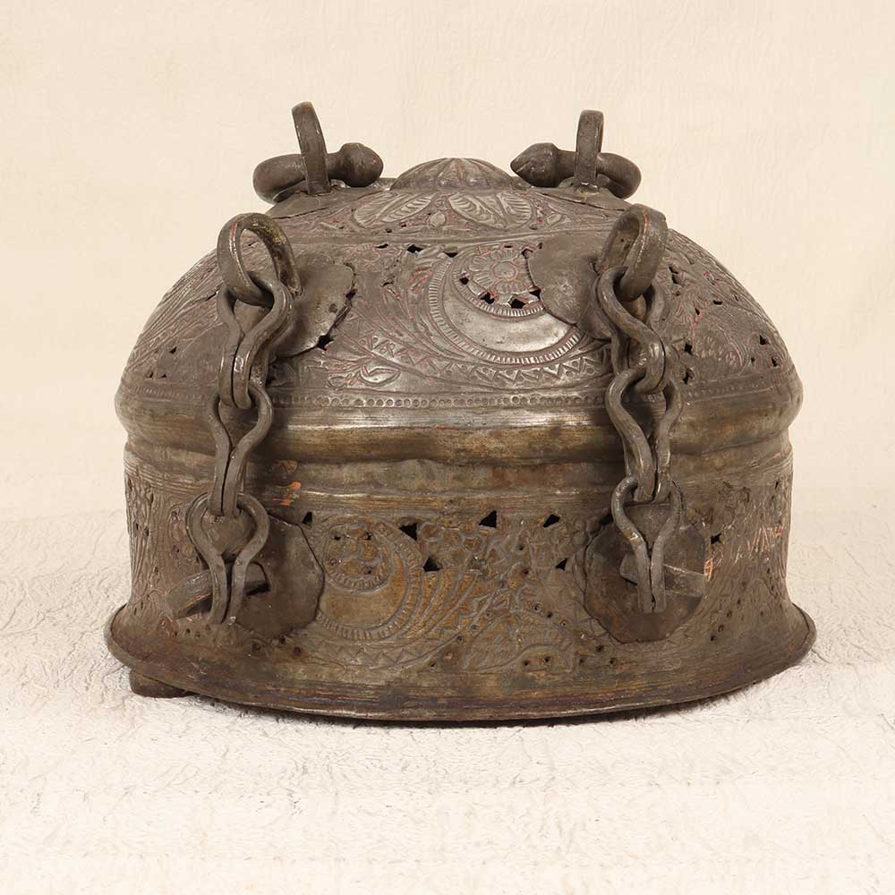 Travel back in time with this exquisite Vintage Paan Daan engraved with fine Islamic motifs. Its intricate patterns reflect masterful Mughal artistry - swirling vines, geometric shapes, and delicate florals come together in a mesmerizing Islamic style. The brass betel leaf container has a vintage patina that evokes images of the grandeur of old royal courts. You can almost imagine the ceremonies and rituals surrounding paan consumption among emperors and nobility. Offer paan to your guests in this Paan Daan and watch their delight. This is no ordinary paan experience - savor the slow, mindful pleasure of paan the regal way. Let its opulence transport you back to the golden days of the Mughals. For history and paan lovers, this Vintage Paan Daan is a must-have statement piece. Let its royal aura ignite conversations and nostalgia. Experience sophisticated, sensory pleasure with a touch of old-world class.