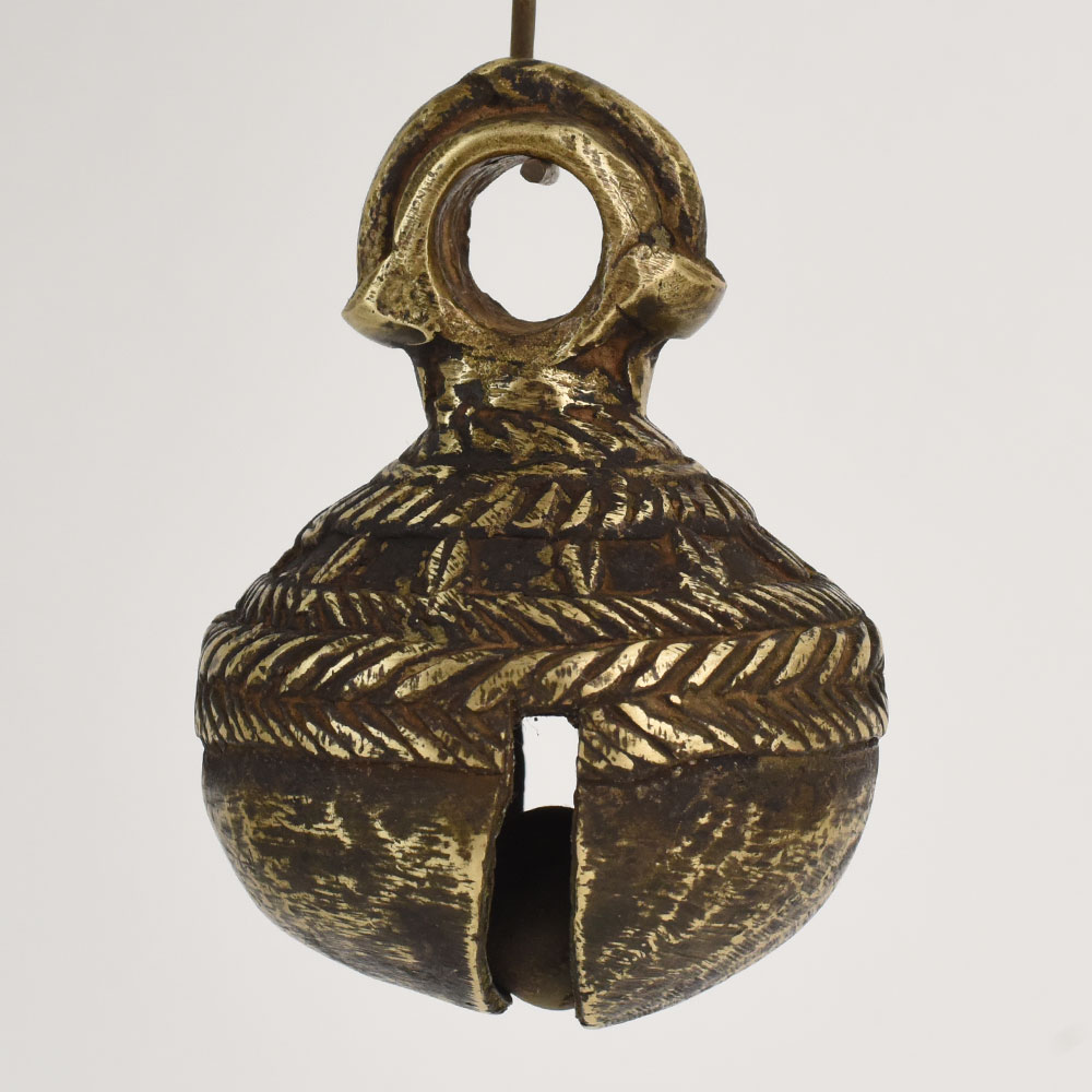 This vintage handmade metal cow bell brings classic farm heritage to life with its durable construction and skilled craftsmanship. Created from bell metal and shaped by hand, this handcrafted bell once served as a vital tool for farmers to track cattle and livestock. Its vintage patina, decorative banding, and textured surface showcase the artistry behind traditional metalwork. Whether used outdoors, displayed indoors, or added to a collection of antique decor, this handmade bell provides both visual appeal and practical value. It produces a bright, resonant chime that makes it functional for animals, yet it also stands as a striking rustic ornament. This handcrafted bell is ideal for farmhouse decor enthusiasts, collectors, and admirers of vintage handmade pieces. Bring home a meaningful artifact that reflects rural tradition and craftsmanship.