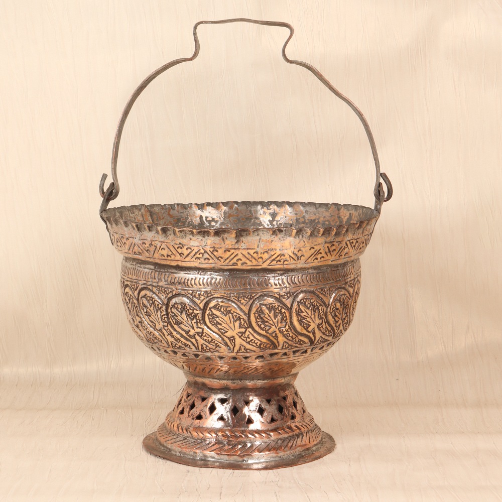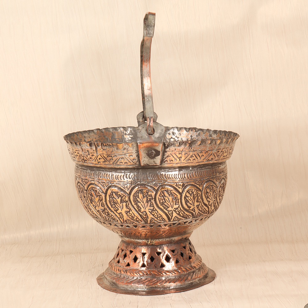 Bring the captivating essence of Islamic art into your home with our Vintage Copper Bucket. This exquisite piece is more than just a functional vessel - it's a stunning work of decorative art that will elevate the ambiance of any space. Immerse yourself in the rich history and vibrant culture of the Middle East with this breathtaking copper bucket. The intricate motifs, inspired by the artistic traditions of the Islamic world, create a mesmerizing visual display that captivates the eye. Whether placed on a mantel, shelf, or side table, this piece will instantly transform your space, evoking a sense of timeless elegance and cultural sophistication. The Vintage Copper Bucket is a must-have for those who appreciate the beauty of traditional craftsmanship and the allure of Islamic art. It's the perfect addition to the homes of design enthusiasts, art lovers, and anyone seeking to infuse their space with a touch of global inspiration. Embrace the captivating essence of this stunning piece and let it transport you to a realm of cultural wonder, where the past and present seamlessly intertwine.