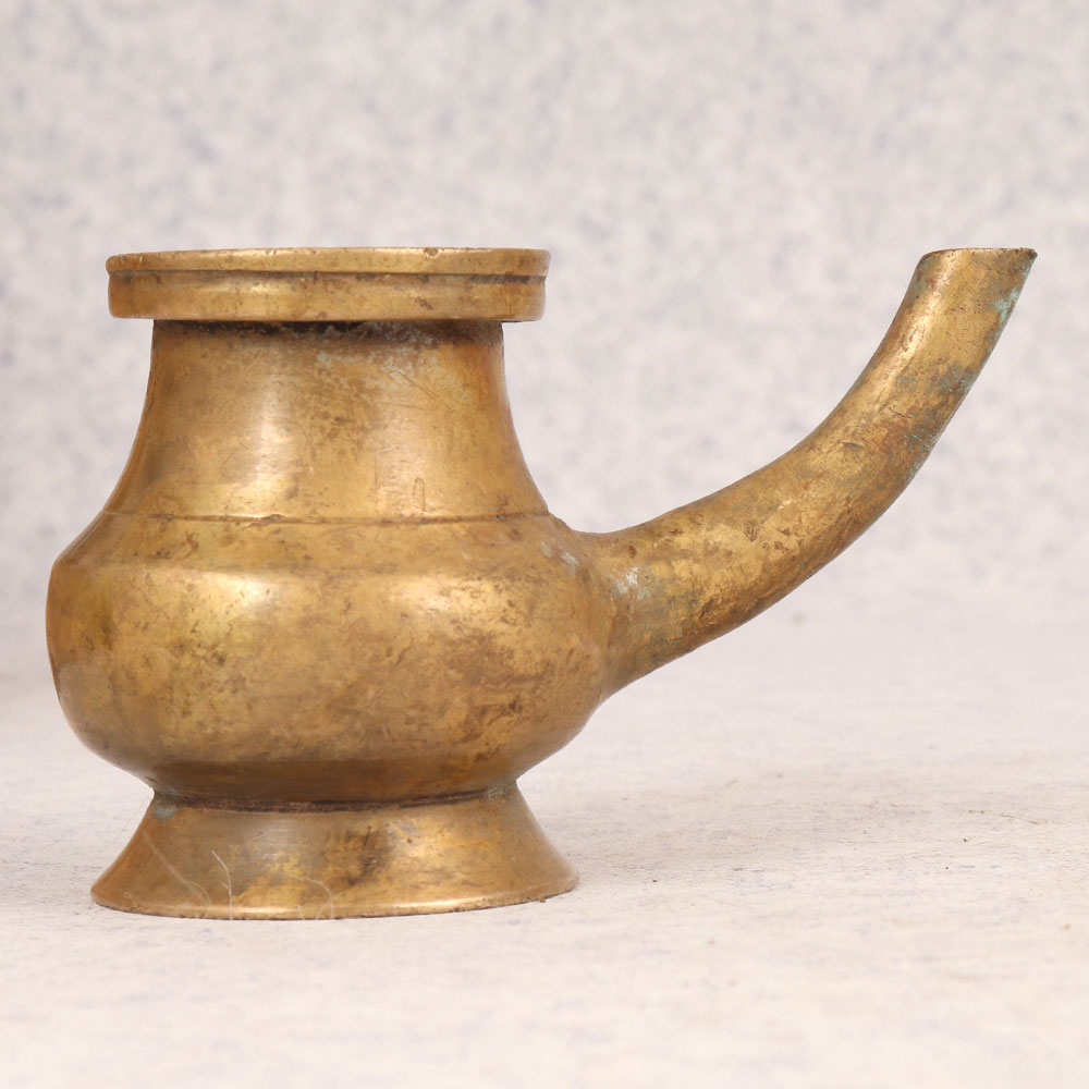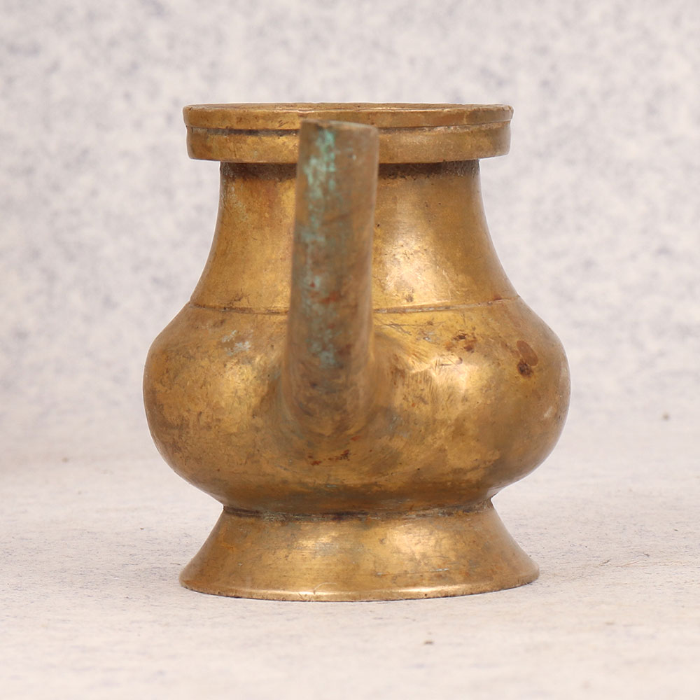 Immerse yourself in the rich tapestry of tradition with our Vintage Brass Sagar Water Pot that is a timeless embodiment of artistry and spirituality. Handmade by skilled Indian artisans, this exquisite piece is made from high-quality brass, reflecting the craftsmanship passed down through generations. Its antique brown finish adds a touch of old-world charm, reminiscent of sacred rituals and prayers performed in temples. Designed with a graceful spout, the Sagar Water Pot is not merely a vessel but a conduit for spiritual connection. Its versatile presence extends beyond the temple, seamlessly fitting into homes, offices, restaurants, hotels, or cafes - enhancing prayer rooms or serving as a distinctive decoration piece. The pot's antique allure makes it a captivating addition to any vintage collection, evoking a sense of nostalgia and cultural richness. Celebrate special, festive, or auspicious occasions with a meaningful gesture by gifting this unique artefact to your family, friends or relatives.