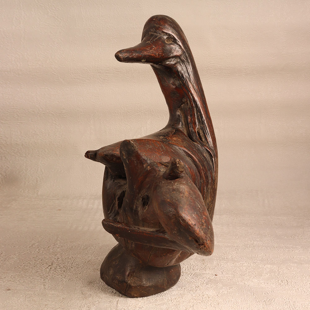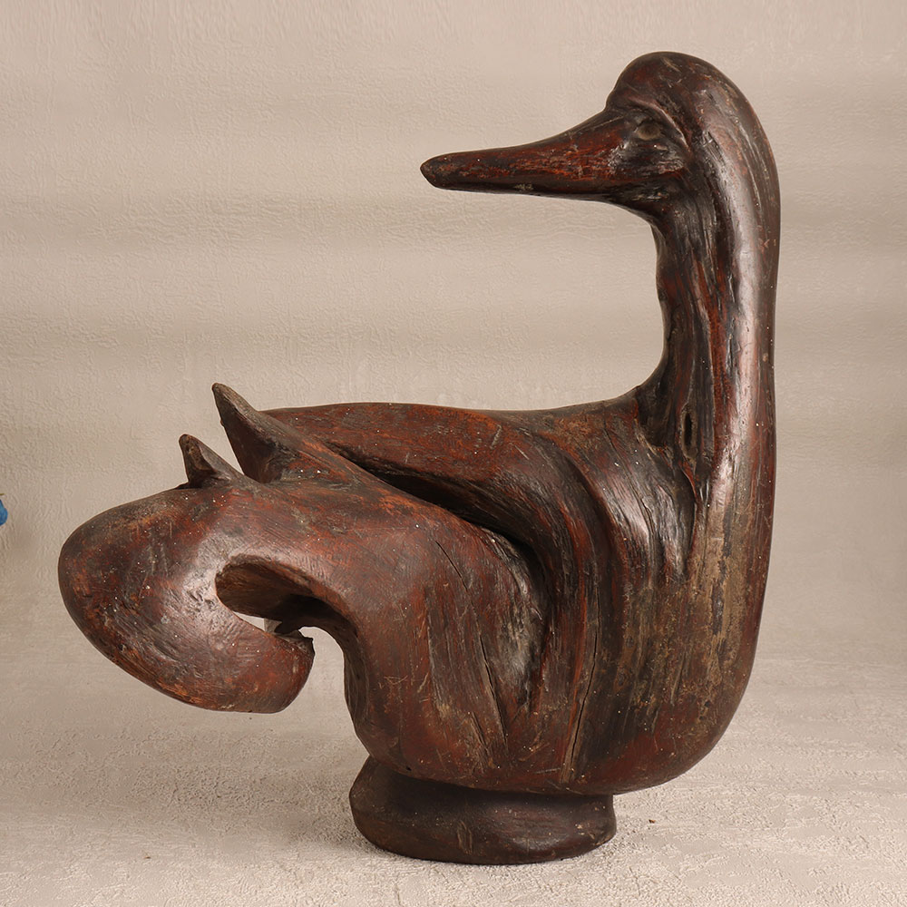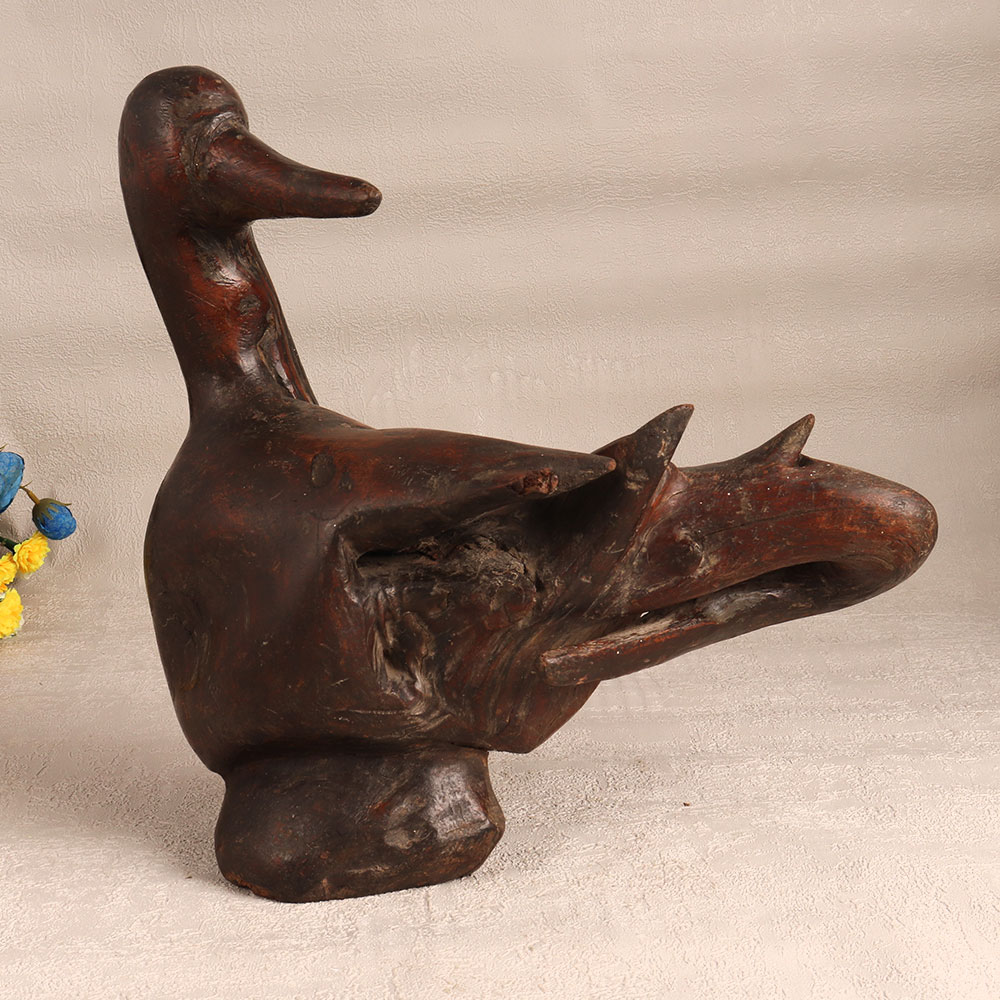 Add a touch of timeless elegance to your living or working space with this vintage wooden duck statue. Handcrafted by highly skilled and experienced artisans in the European Art tradition, this masterpiece boasts a rich history and unparalleled craftsmanship. Made from high-quality mango wood, this sculpture showcases the beauty of natural materials while featuring an antique golden finish that adds a touch of opulence. Its intricate details and artisanal handiwork bring a touch of nostalgia to any environment. Whether you choose to display it in your home, office, hotel, cafe, shop, or restaurant, this wooden duck statue serves as a stunning decoration that exudes a sense of sophistication and heritage. It's a perfect addition to your vintage collection, making it an ideal piece for exhibitions and displays. Furthermore, this wooden duck statue makes for a thoughtful gift to your family, friends or relatives on special, festive, or auspicious occasions, symbolizing not only beauty but also the enduring craftsmanship of European Art.