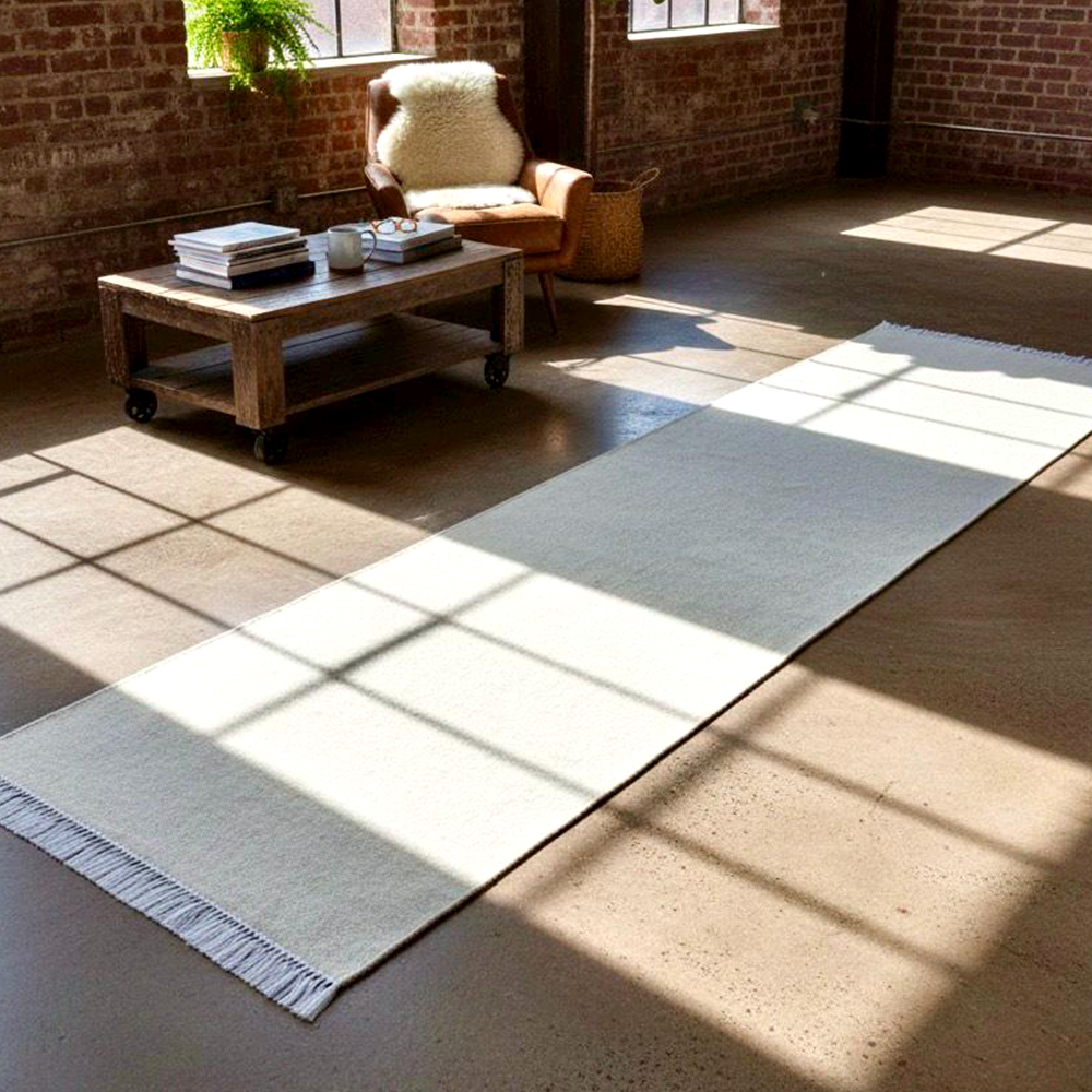 What colors are featured in this minimalist, flatweave design?