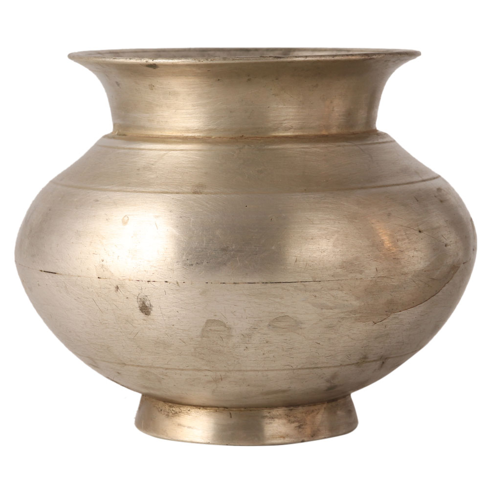 Handmade water pot made of a white metal alloy. It can be used for praying to the sun. It is used in Hindu hawan (prayer). Display it in your collection to enhance your collection.