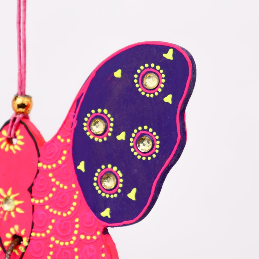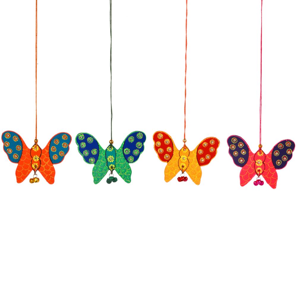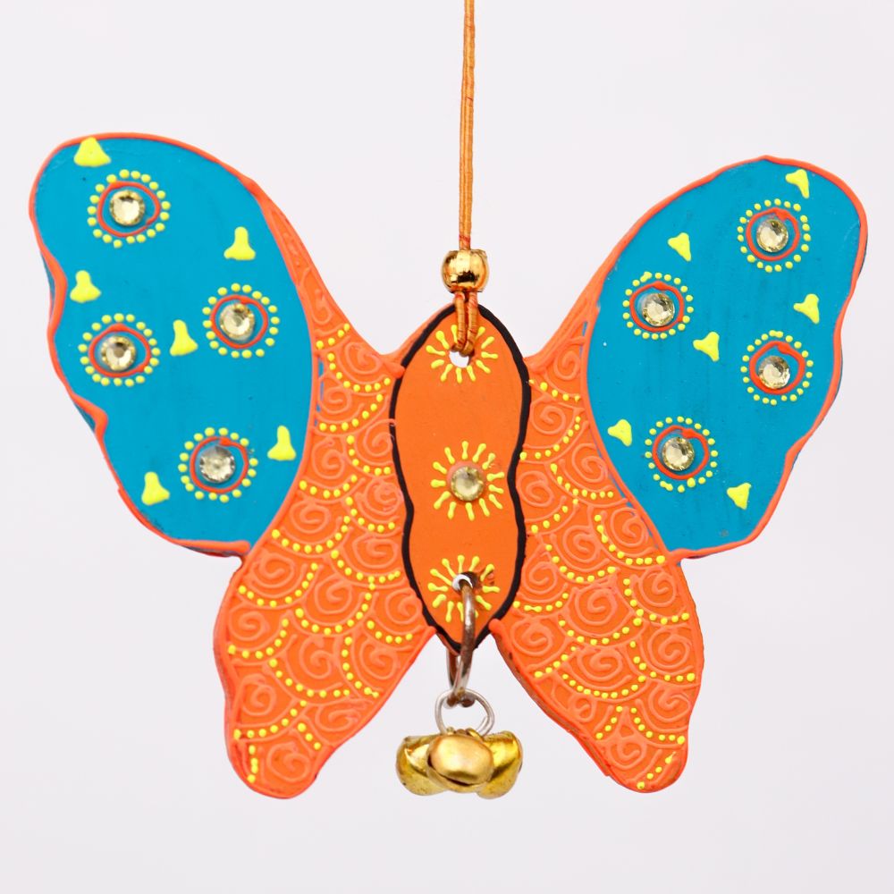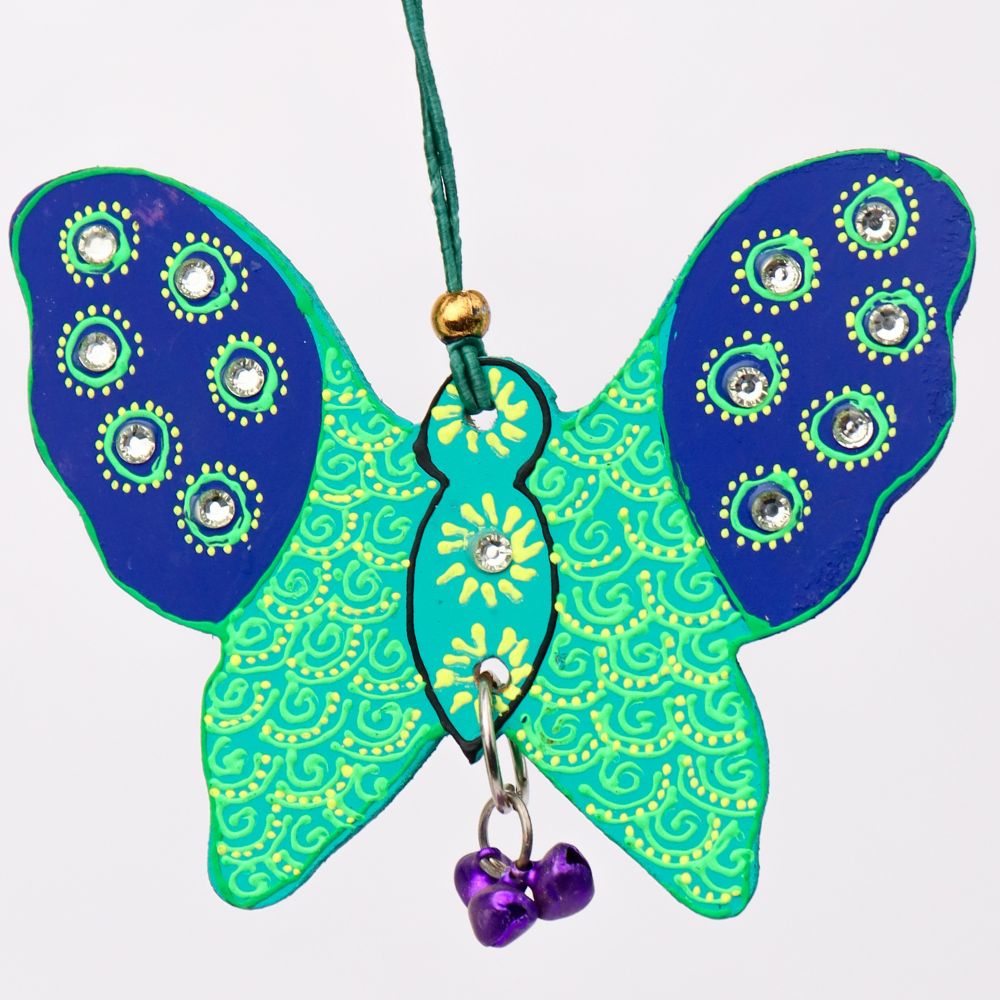 - Hand-painted wooden butterfly Christmas hanging with bells and mirrors