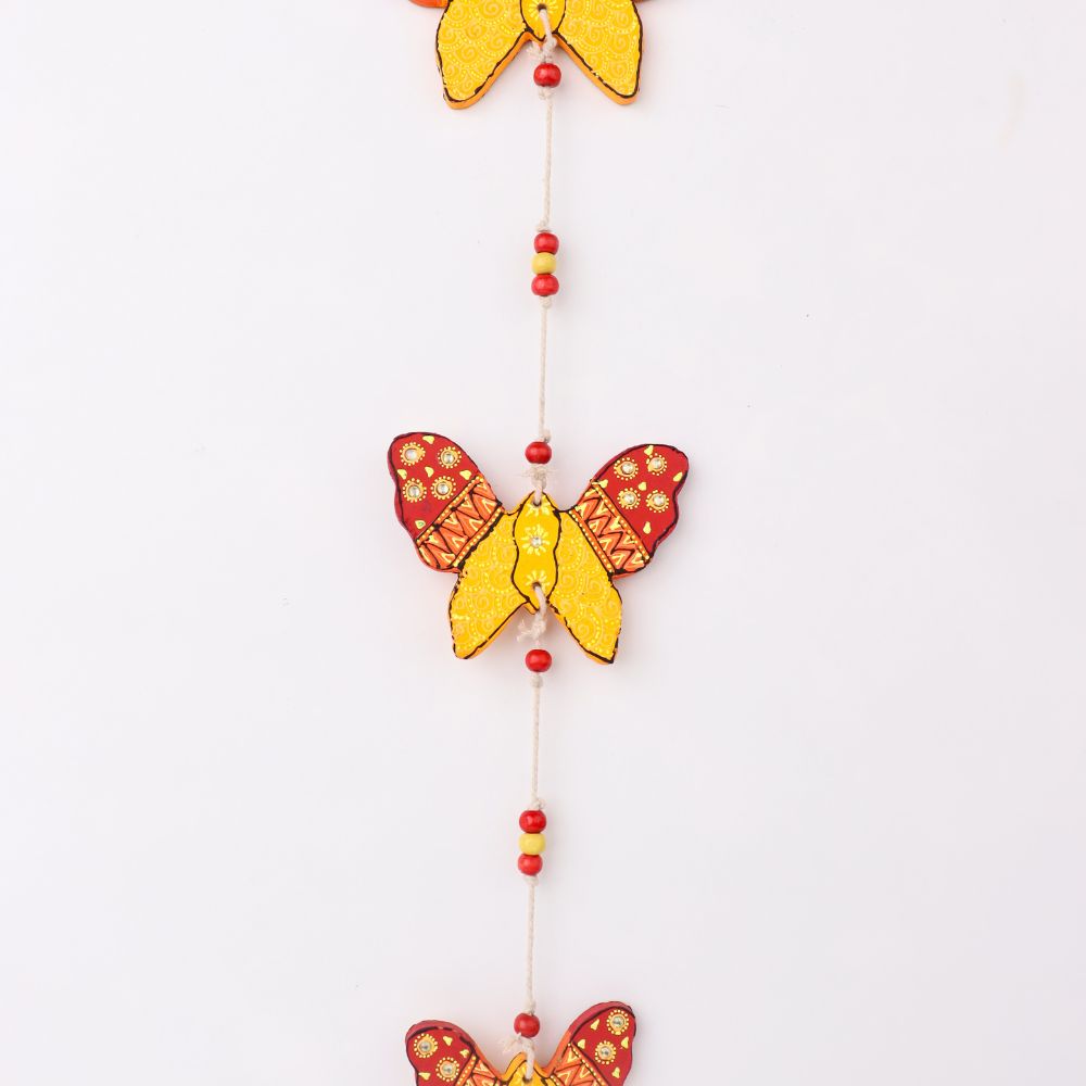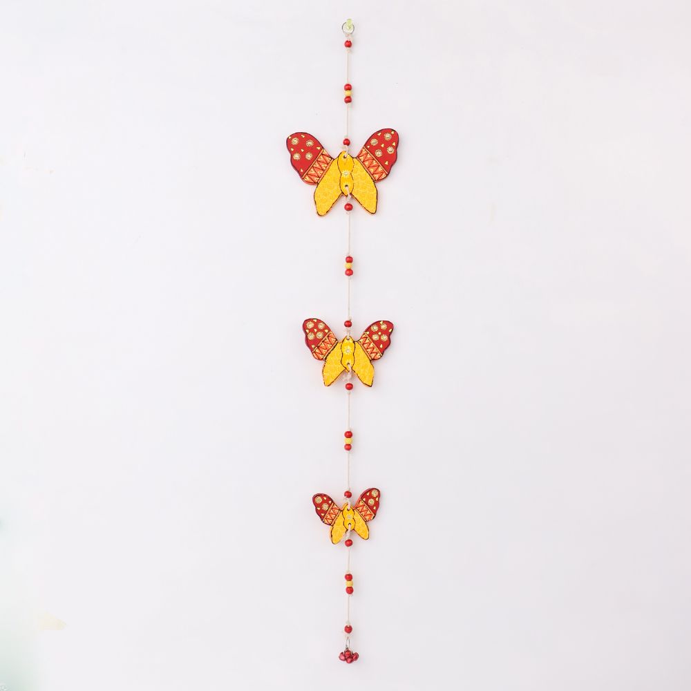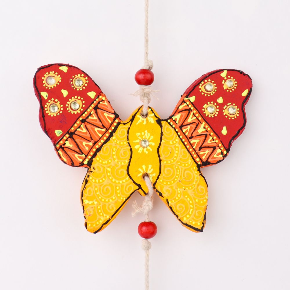 Add a touch of charm and elegance to your interiors with this Handmade Wooden Butterfly Wall Hanging. Crafted with care, each piece showcases beautifully painted butterflies accented with beads and bells, bringing a lively and artistic vibe to your home. The wall hanging is perfect for brightening up entryways, balconies, living rooms, or even gifting as a thoughtful handmade decor item. Available in two attractive colors - Red-Yellow and Blue-Yellow - and also as a complete set of 2 including both colors, this wall hanging adds a vibrant and cheerful look wherever it is placed.