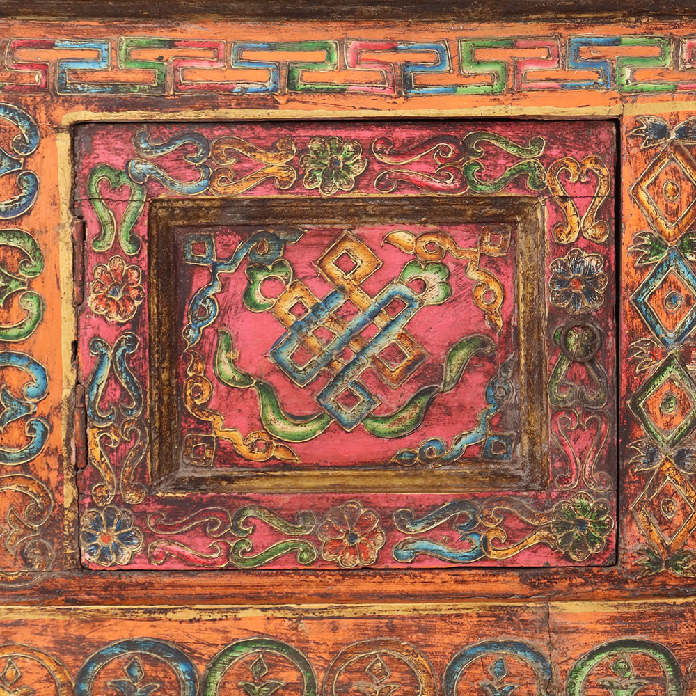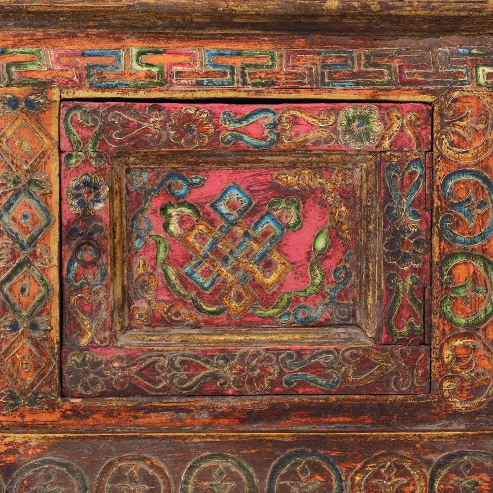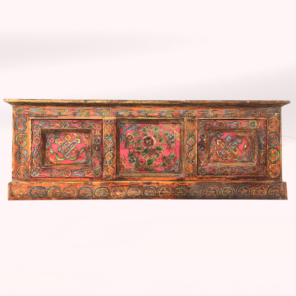Celebrate traditional artistry with this handmade wooden storage box, richly decorated with hand-painted floral patterns and symbolic geometric designs. The vibrant blend of pink, green, and golden hues highlights its antique character, while the detailed borders showcase Tibetan-inspired craftsmanship. This box is not only a functional piece for storing jewelry, documents, or keepsakes but also a decorative accent that adds heritage charm to your interiors. Crafted by skilled artisans using age-old techniques, each piece is unique, making it a timeless collectible. Whether placed in a living room, study, or meditation space, this painted wooden box brings culture, elegance, and meaning to your home décor.