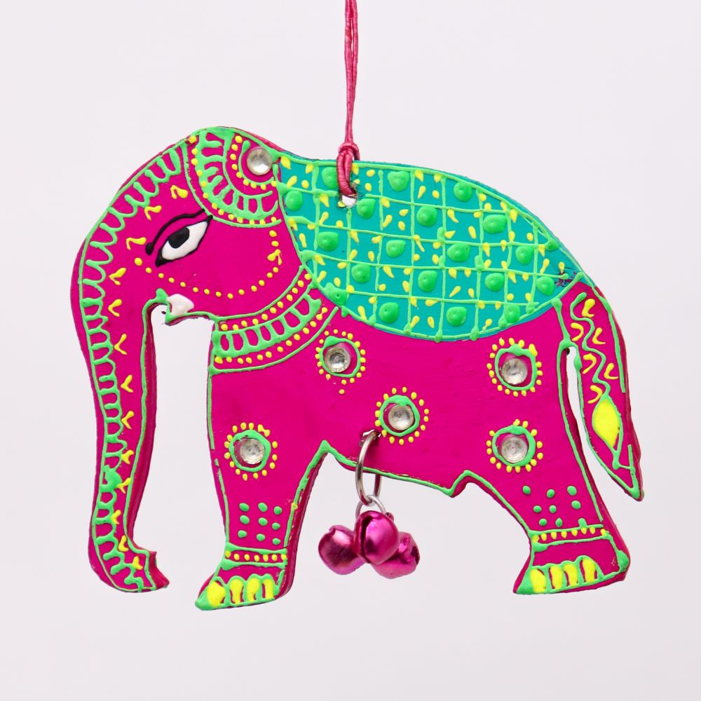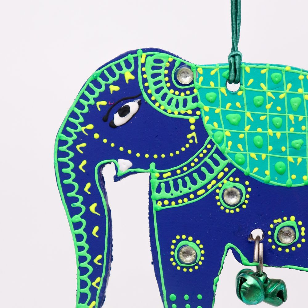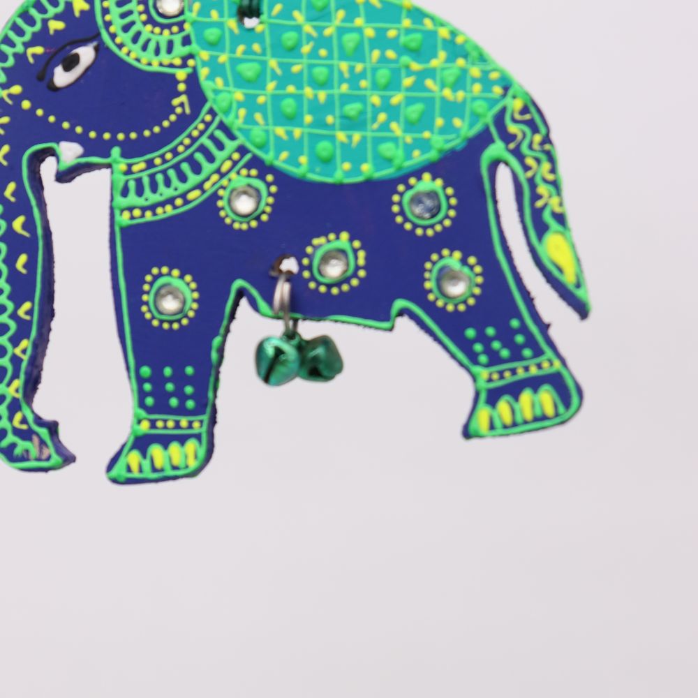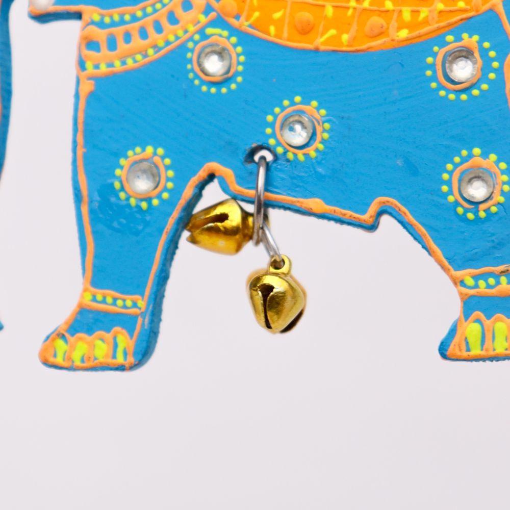 Bring a touch of traditional charm and artistic elegance to your Christmass with this Handmade Wooden Elephant Christmas Hanging, beautifully crafted and hand-painted to brighten up your home decor. Symbolizing wisdom, strength, and prosperity, each elephant is decorated with vibrant colors, mirror accents, and a small bell that creates a gentle, soothing chime. Perfect for living rooms, entryways, balconies, or festive setups, this Christmas hanging blends cultural artistry with contemporary appeal. Available in four striking colors - Blue-Green, Red-Yellow, Sky Blue-Orange, and Pink-Green - you can purchase them individually or as a complete set of 4 for a coordinated, colorful display. These artisan-made Christmas hangings also make wonderful gifts for housewarmings, weddings, and festive occasions.
