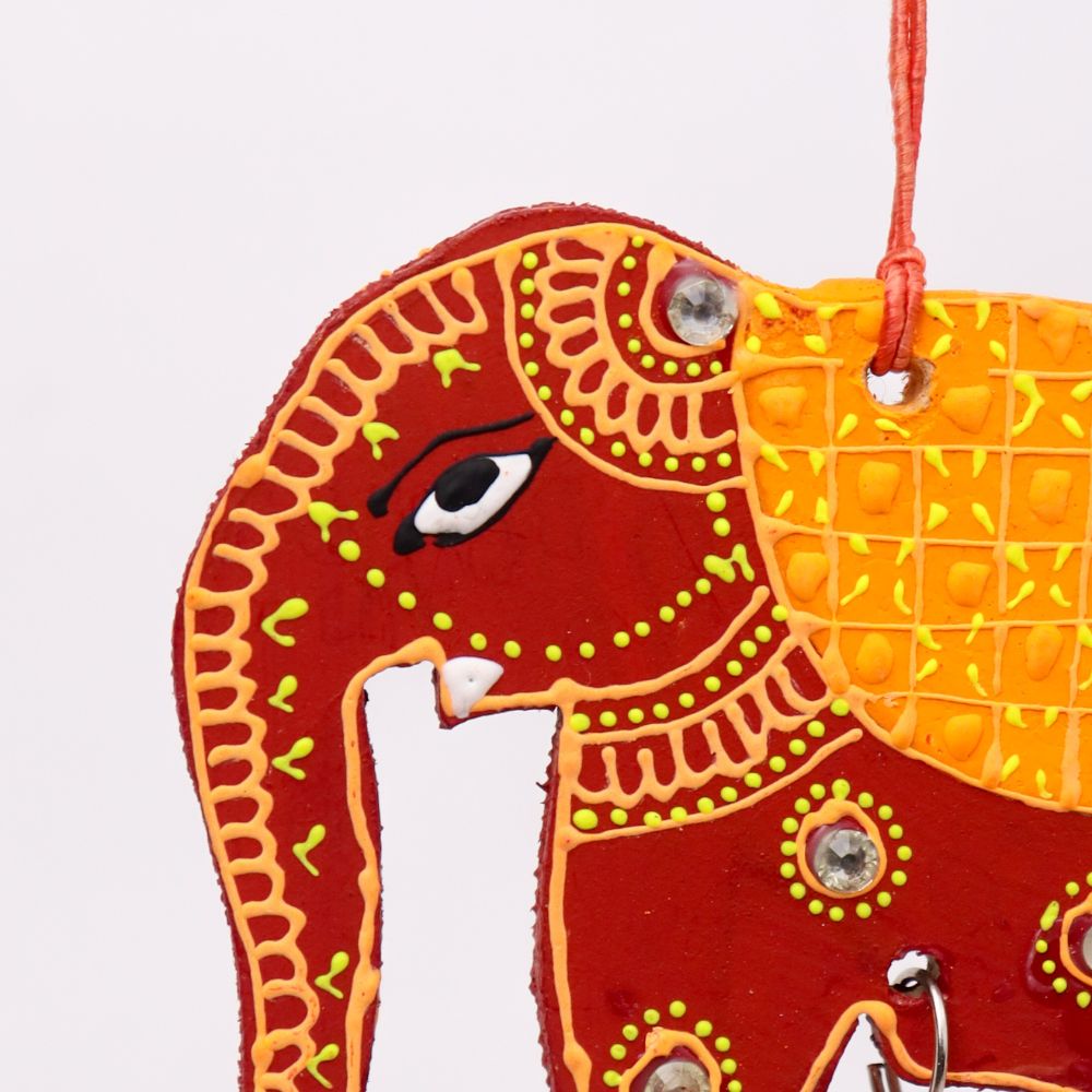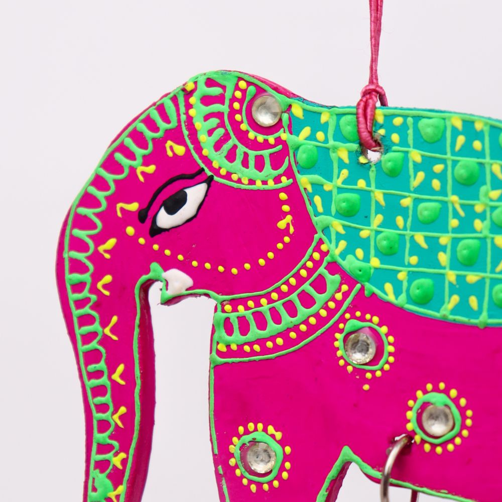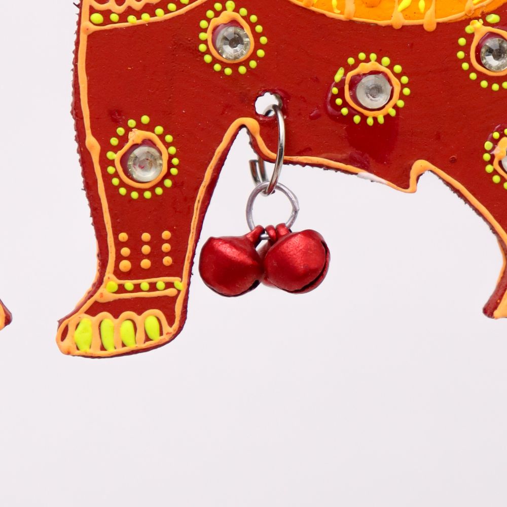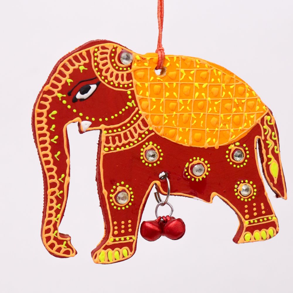 Bring a touch of traditional charm and artistic elegance to your Christmass with this Handmade Wooden Elephant Christmas Hanging, beautifully crafted and hand-painted to brighten up your home decor. Symbolizing wisdom, strength, and prosperity, each elephant is decorated with vibrant colors, mirror accents, and a small bell that creates a gentle, soothing chime. Perfect for living rooms, entryways, balconies, or festive setups, this Christmas hanging blends cultural artistry with contemporary appeal. Available in four striking colors - Blue-Green, Red-Yellow, Sky Blue-Orange, and Pink-Green - you can purchase them individually or as a complete set of 4 for a coordinated, colorful display. These artisan-made Christmas hangings also make wonderful gifts for housewarmings, weddings, and festive occasions.