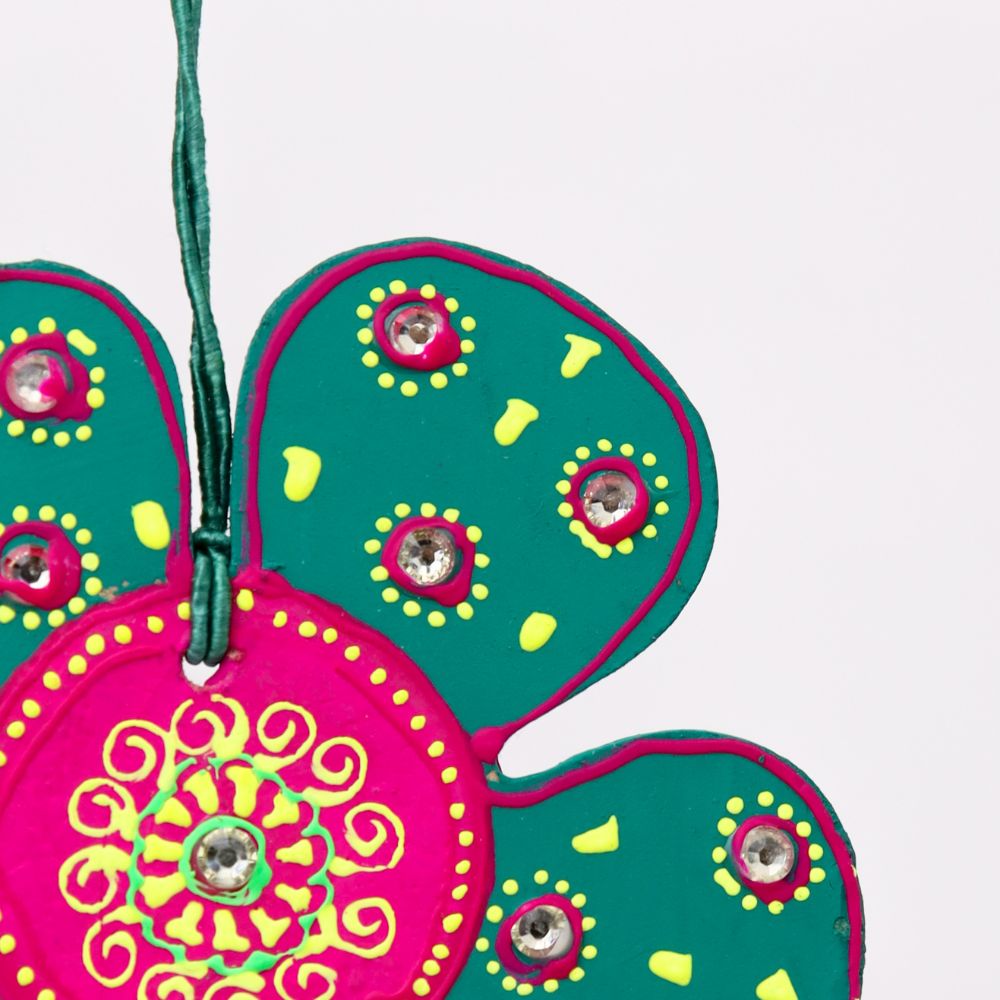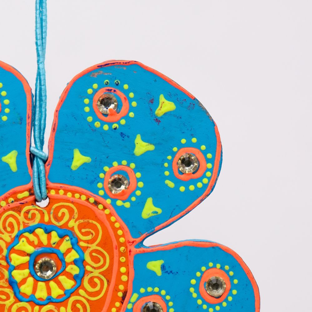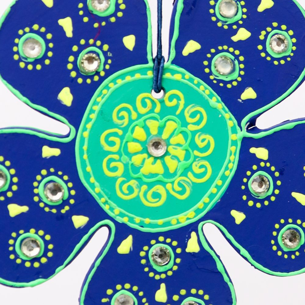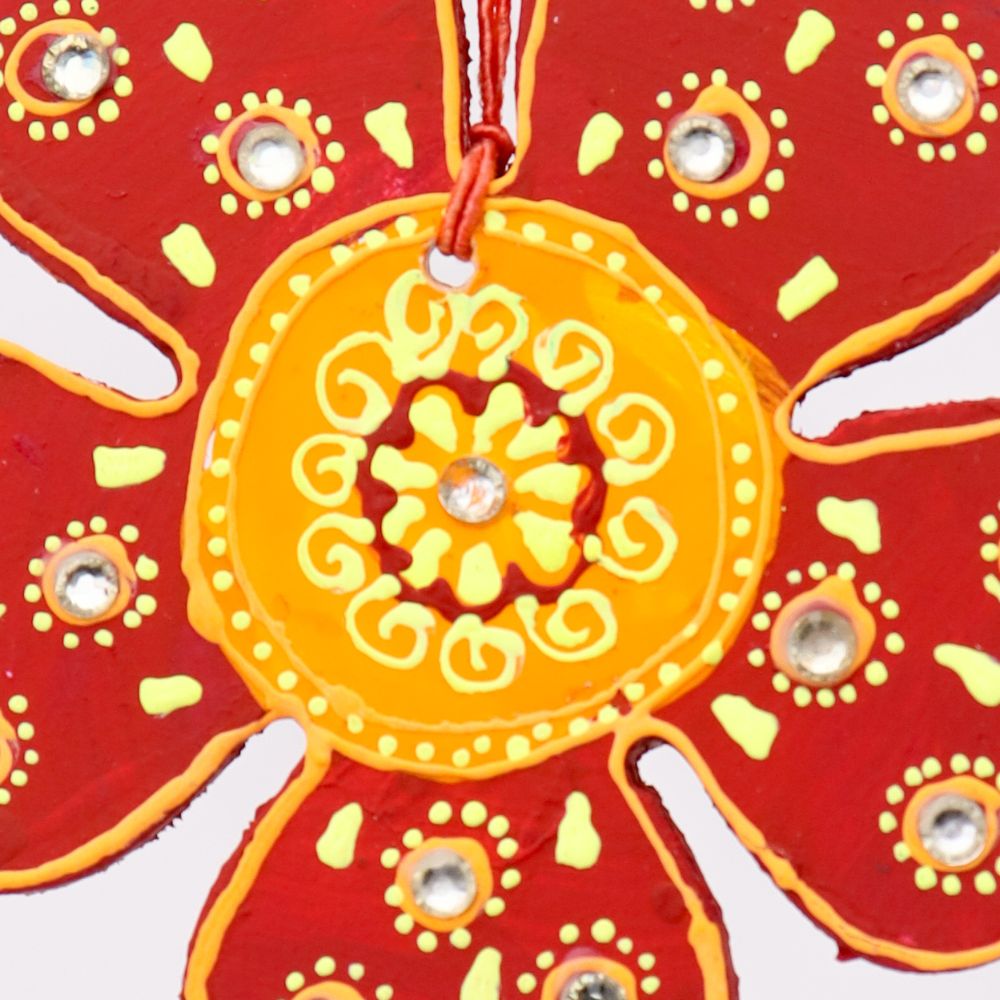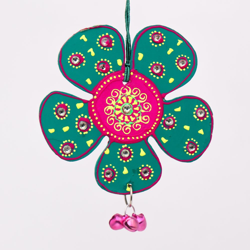 Bring a splash of festive color and artistry to your interiors with this Handmade Wooden Flower Christmas Hanging. Beautifully hand-painted with vibrant shades and intricate detailing, each piece is adorned with mirror accents and a tiny hanging bell that adds a cheerful touch. The flower design with five petals makes it a versatile decor accent, perfect for brightening up living rooms, balconies, kids’ rooms, and entryways. Available in four striking colors - Red-Yellow, Green-Pink, Blue-Green, and Sky Blue-Orange - you can select individual pieces or get the complete set of 4 for a coordinated, decorative display. These artisan-crafted Christmas hangings also make thoughtful gifts for housewarmings, festive occasions, or cultural celebrations.