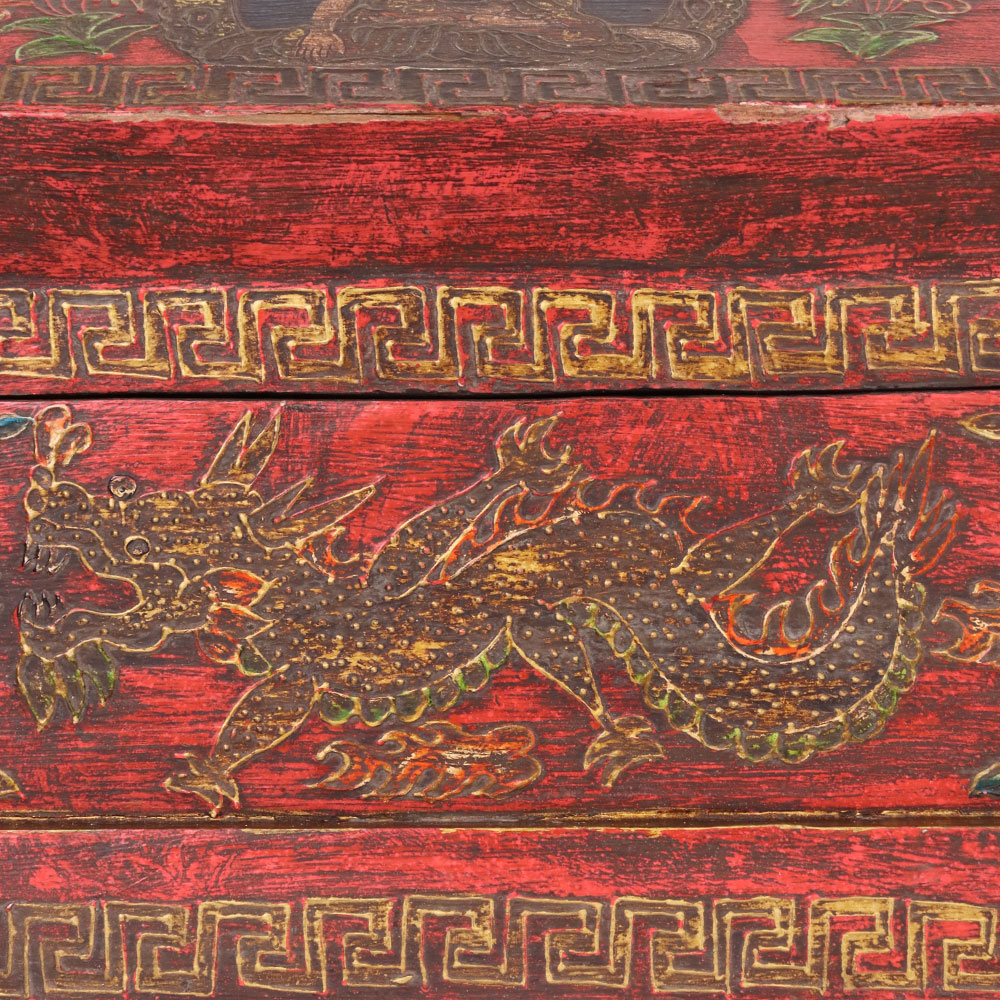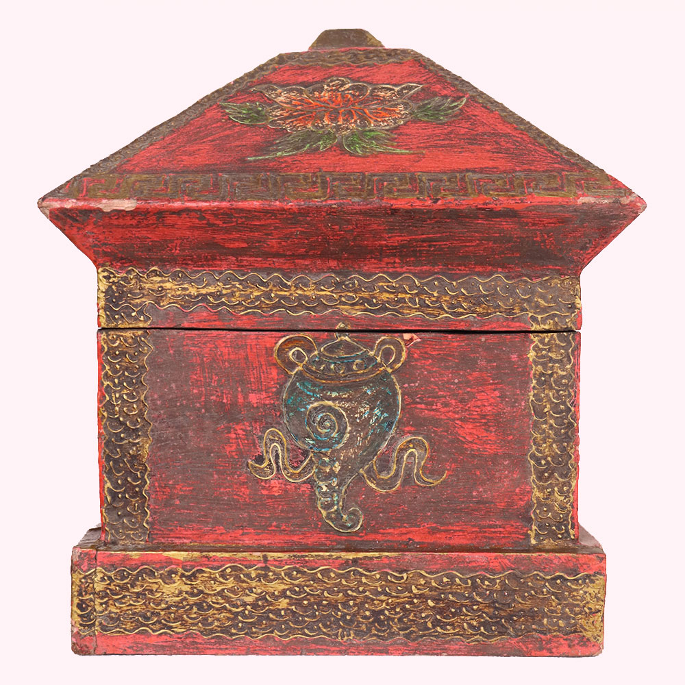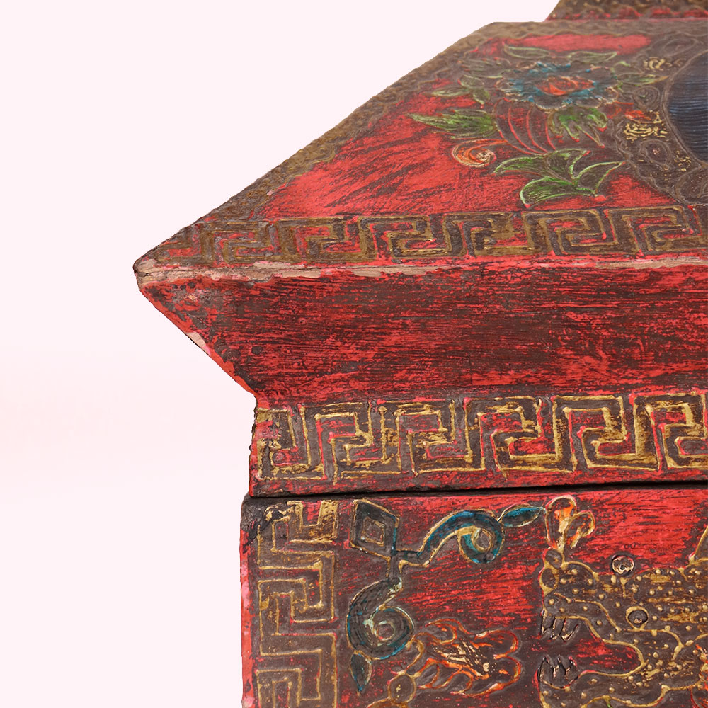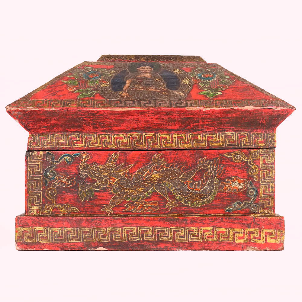 This exquisite handmade wooden box is a perfect blend of traditional craftsmanship and artistic detailing. Hand-painted in vibrant red with intricate golden dragon motifs and a serene Buddha artwork on the lid, it reflects the rich heritage of Tibetan and Asian art. Crafted with precision, this wooden storage box is not just functional but also serves as a decorative collectible for your home. The antique-style finish and symbolic patterns make it a unique piece for gifting, storing keepsakes, or enhancing spiritual and cultural décor. A timeless wooden box for collectors and art lovers alike, it brings elegance and meaning to any space.