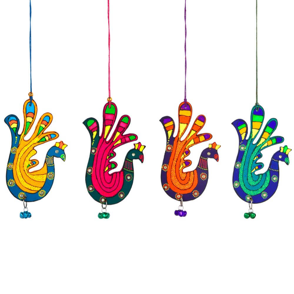 Bring elegance and cultural artistry into your home with this Handmade Wooden Peacock Christmas Hanging, beautifully designed to add charm, vibrance, and positivity to your space. Each peacock is hand-painted with intricate patterns, detailed feathers, sparkling mirror accents, and a small bell that adds a delightful tinkle. Symbolizing beauty, grace, and prosperity, these Christmas hangings are perfect for living rooms, balconies, kids’ rooms, or as festive decorations. Available in four striking color combinations - Blue-Green, Yellow-Blue, Orange-Purple, and Pink-Green - you can purchase them individually or as a complete set of 4 for a coordinated and colorful display. These artisan-crafted Christmas hangings also make wonderful gifts for housewarmings, weddings, and festive occasions.