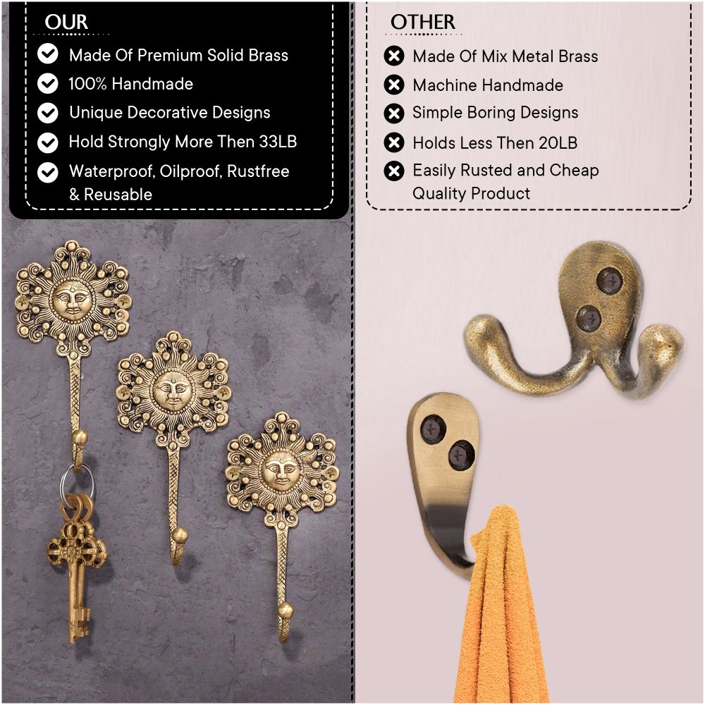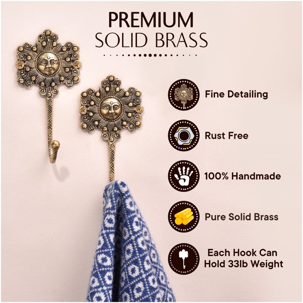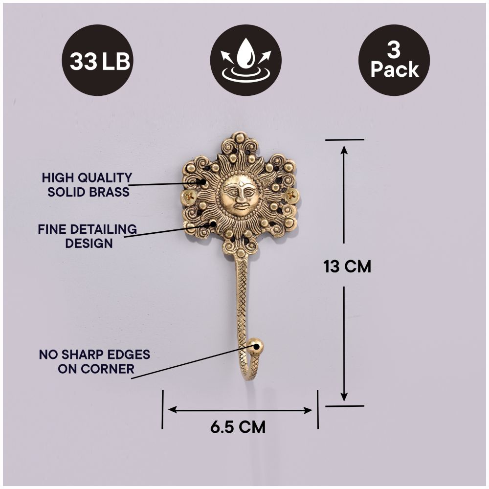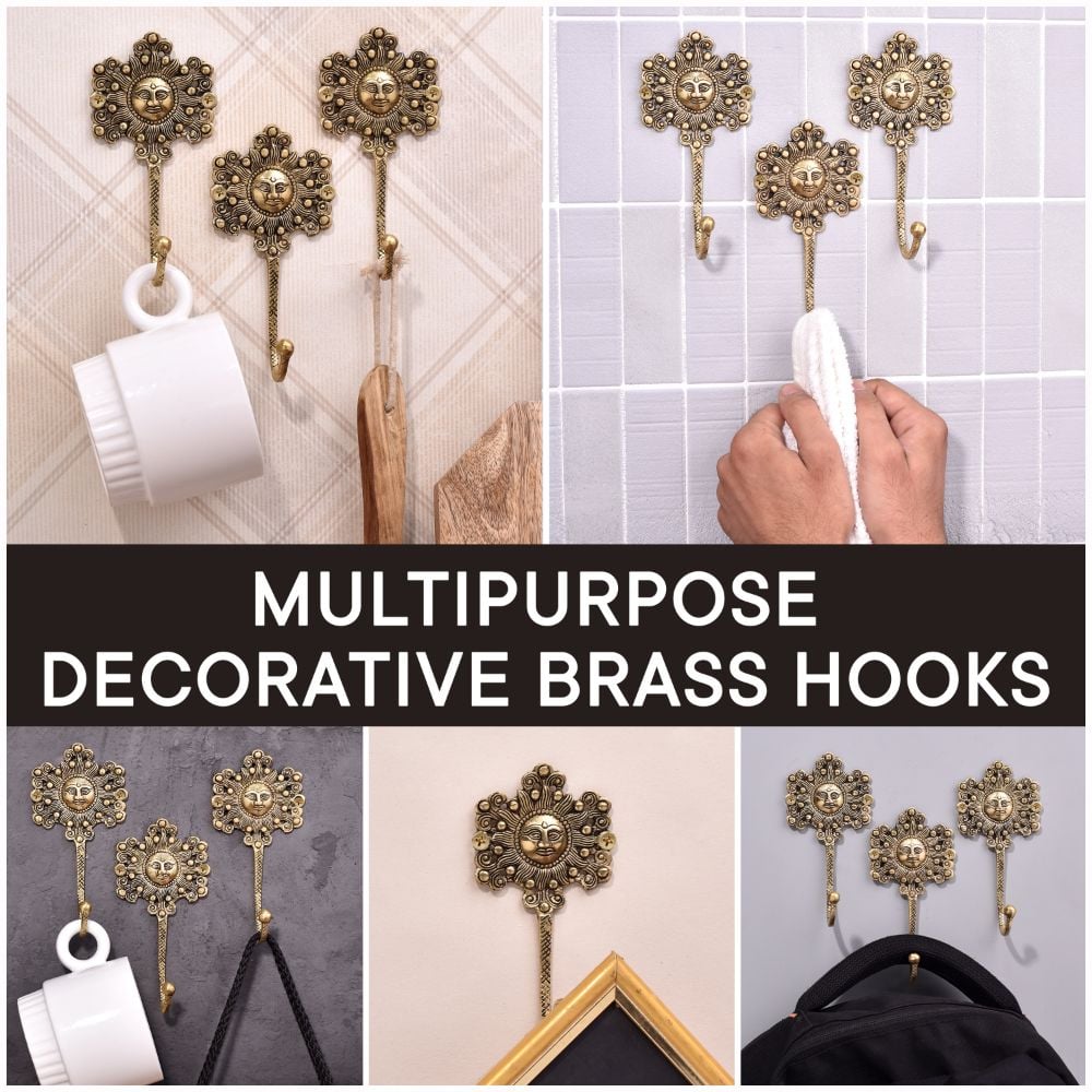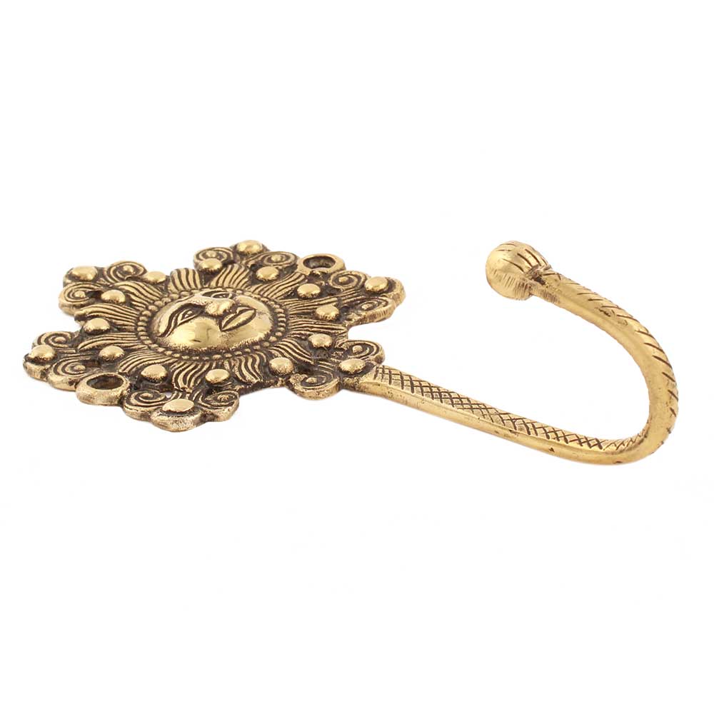 This yellow-painted brass wall hook has a sun face and a traditional design. The sculpture is beautiful, so you can use it as a wall hook to hang a coat or attach it to the wall and decorate it in a vintage style.