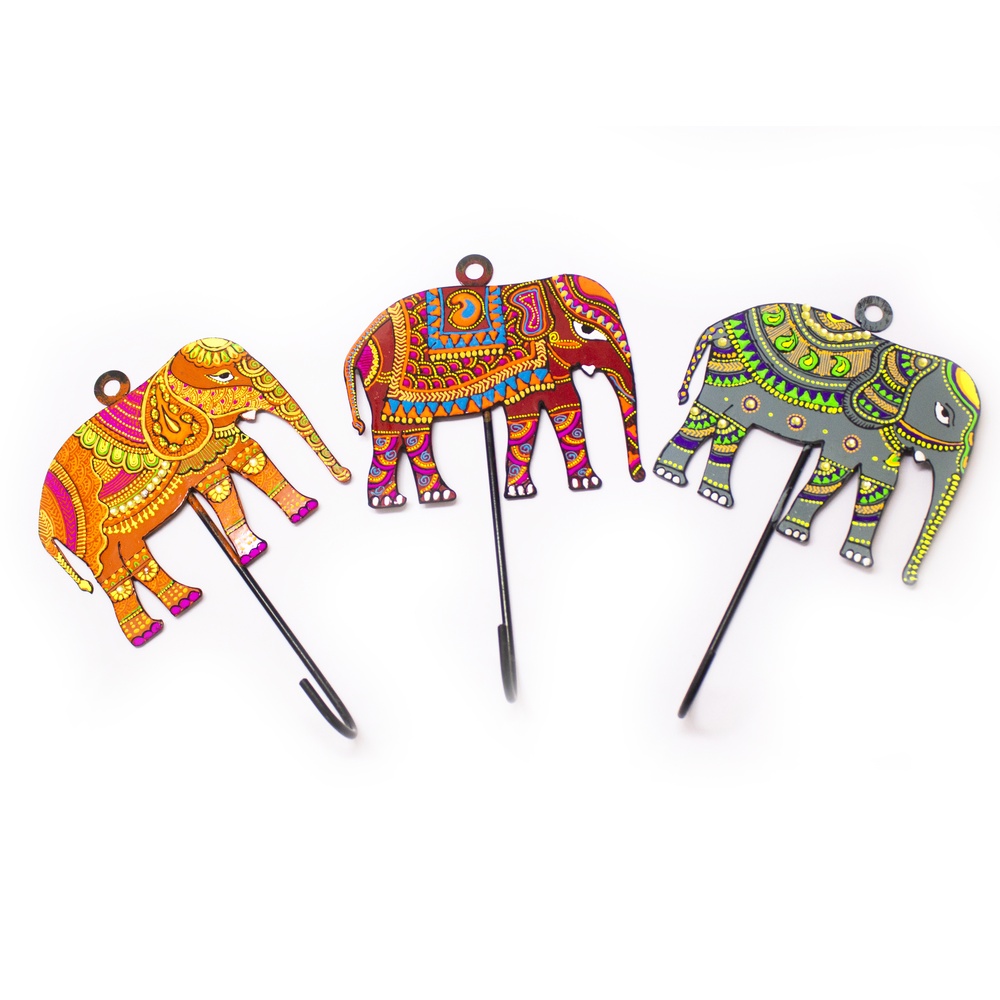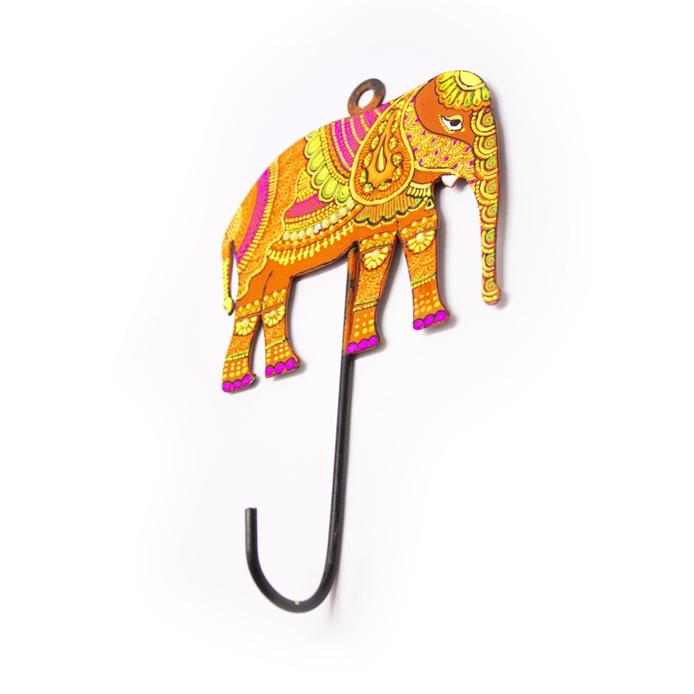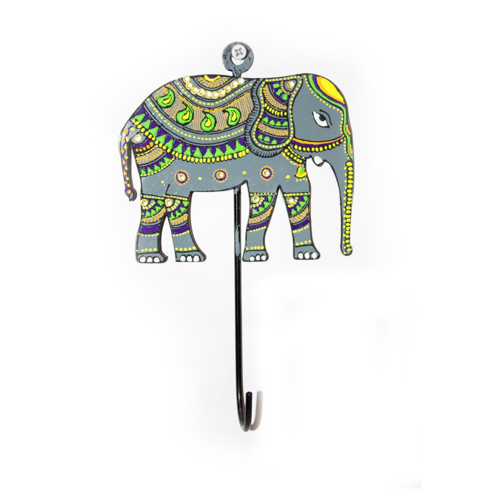 This handpainted elephant wall hook blends cultural symbolism with everyday utility, making it a distinctive addition to art-inspired interiors.