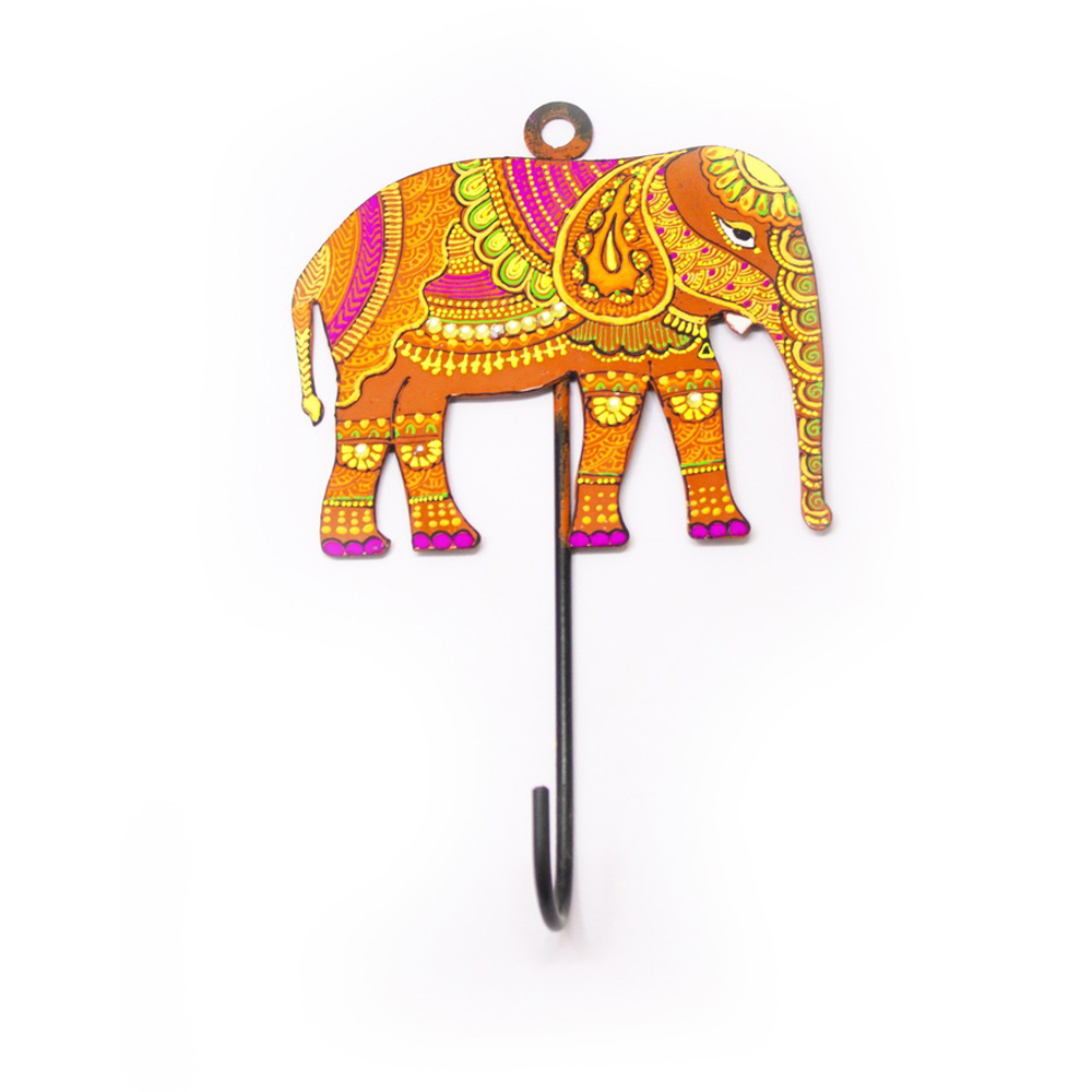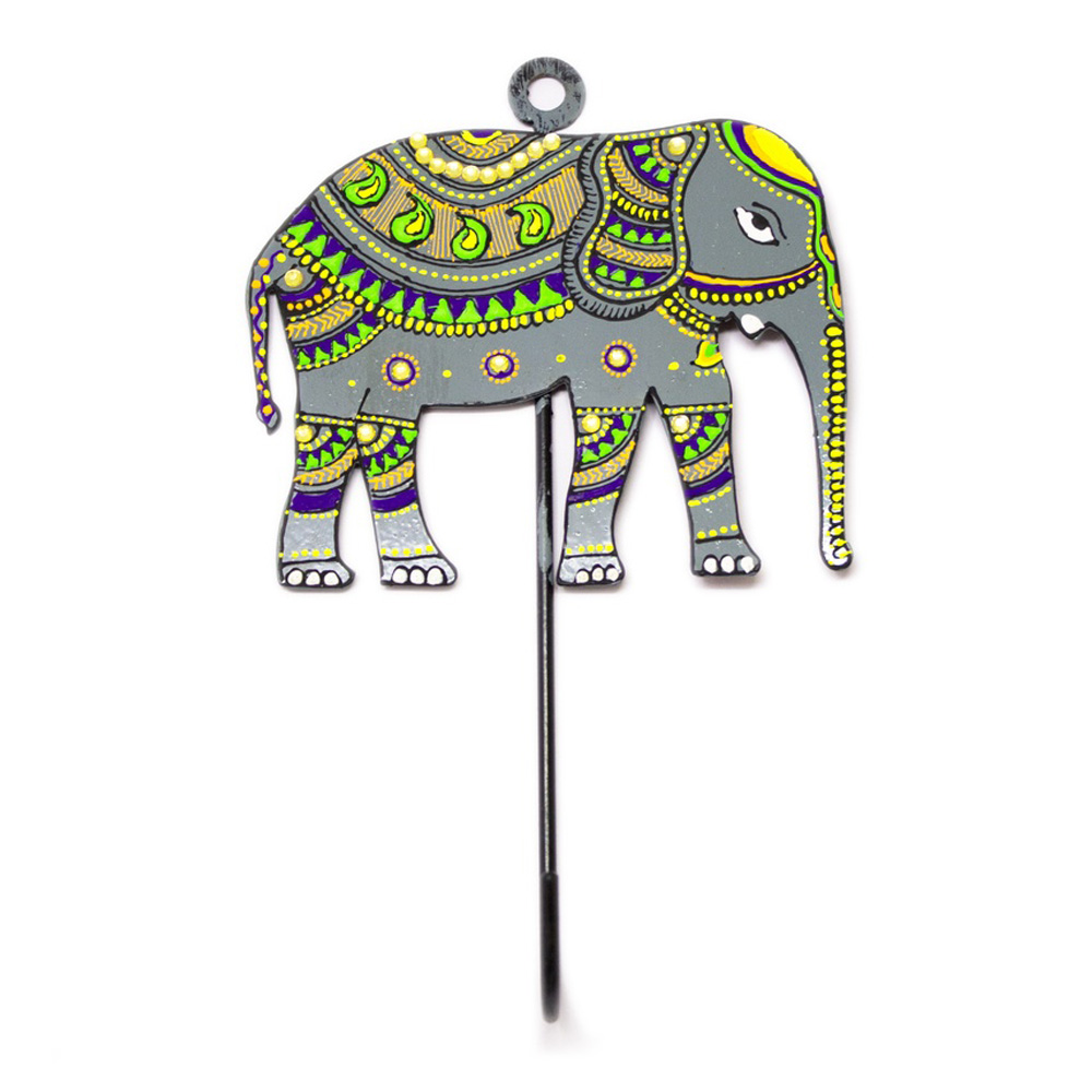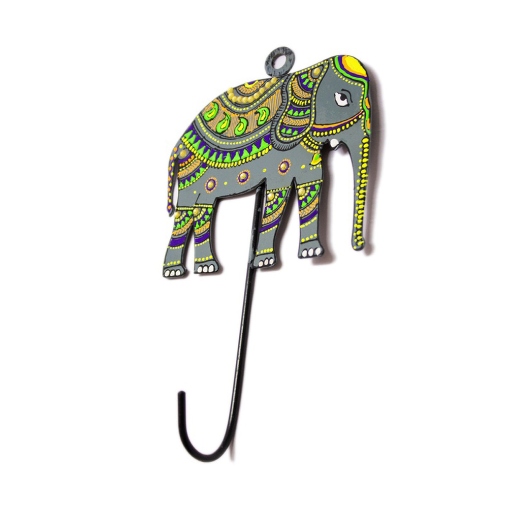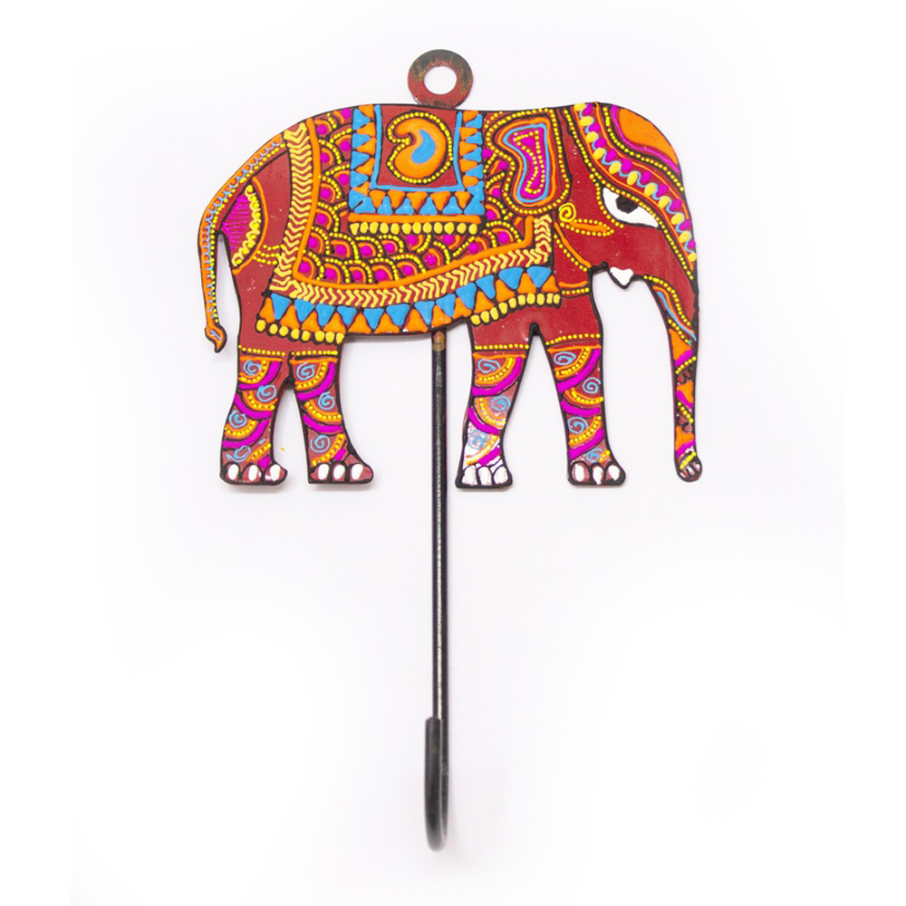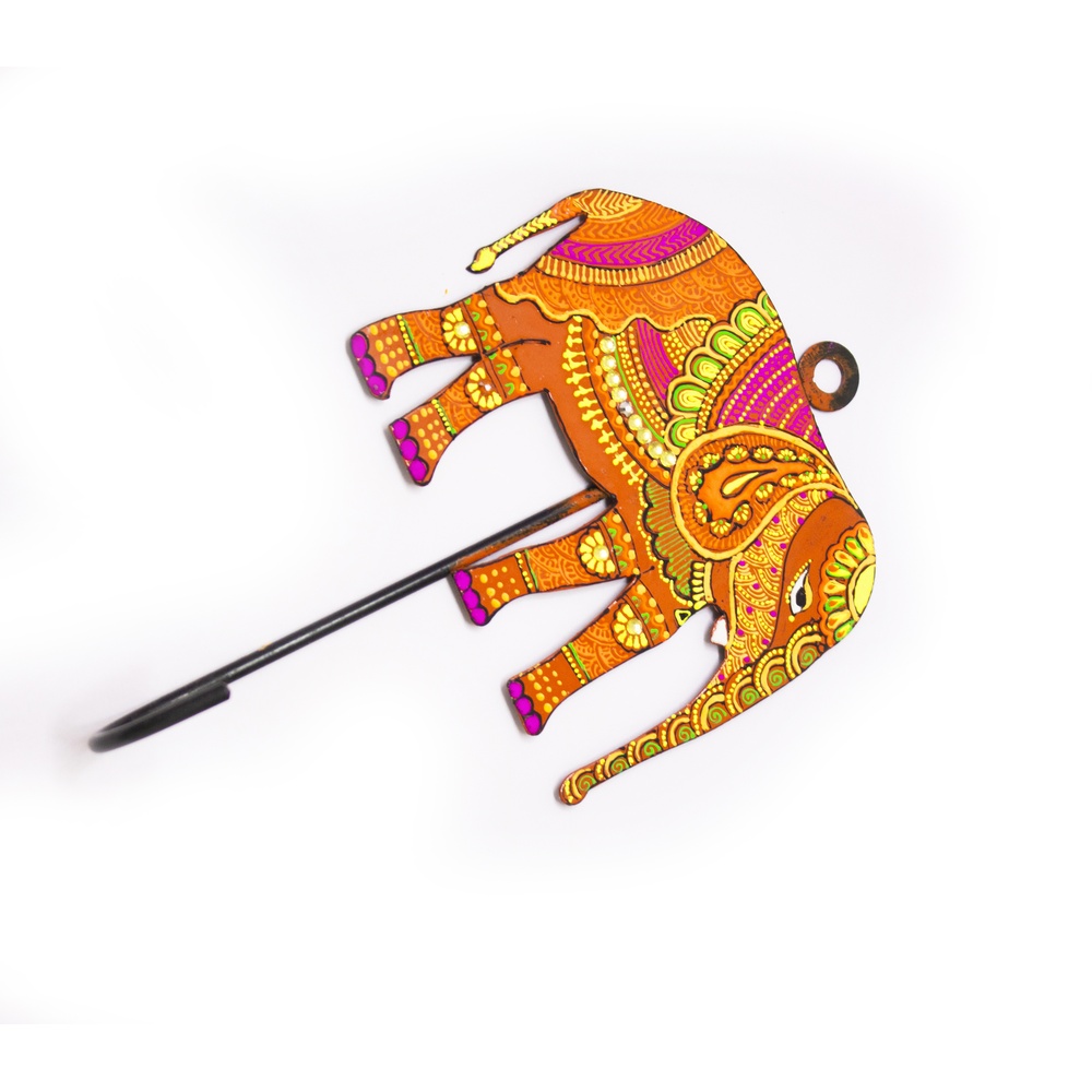 Bring symbolic Indian artistry into your space with our Handpainted Elephant Design Iron Wall Hook. Representing strength, wisdom, and good fortune, this decorative wall hook features an intricately handpainted elephant motif highlighted with traditional patterns and vibrant detailing. Crafted from durable iron, it is designed to be both visually striking and functionally reliable. Packed & quality-checked by Indianshelf.