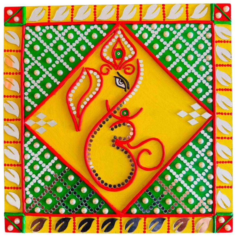 This Ganesha Lippan painting is ideal for puja rooms, meditation spaces, or home decor. It adds a touch of spirituality and elegance to any setting. With its sacred iconography, intricate Lippan art, and spiritual significance, this Ganesha Lippan painting is a beautiful piece that brings positivity and tranquility to any space.