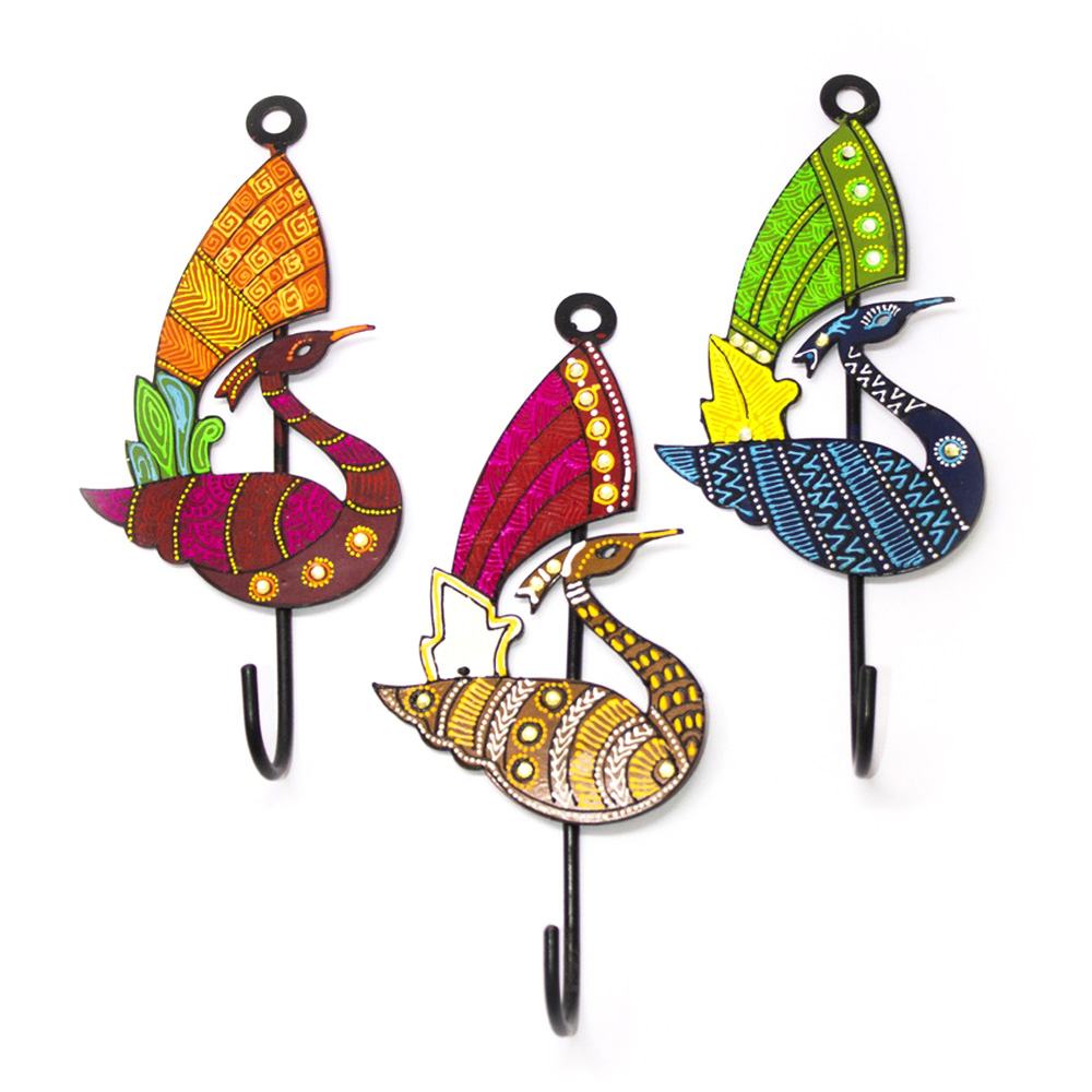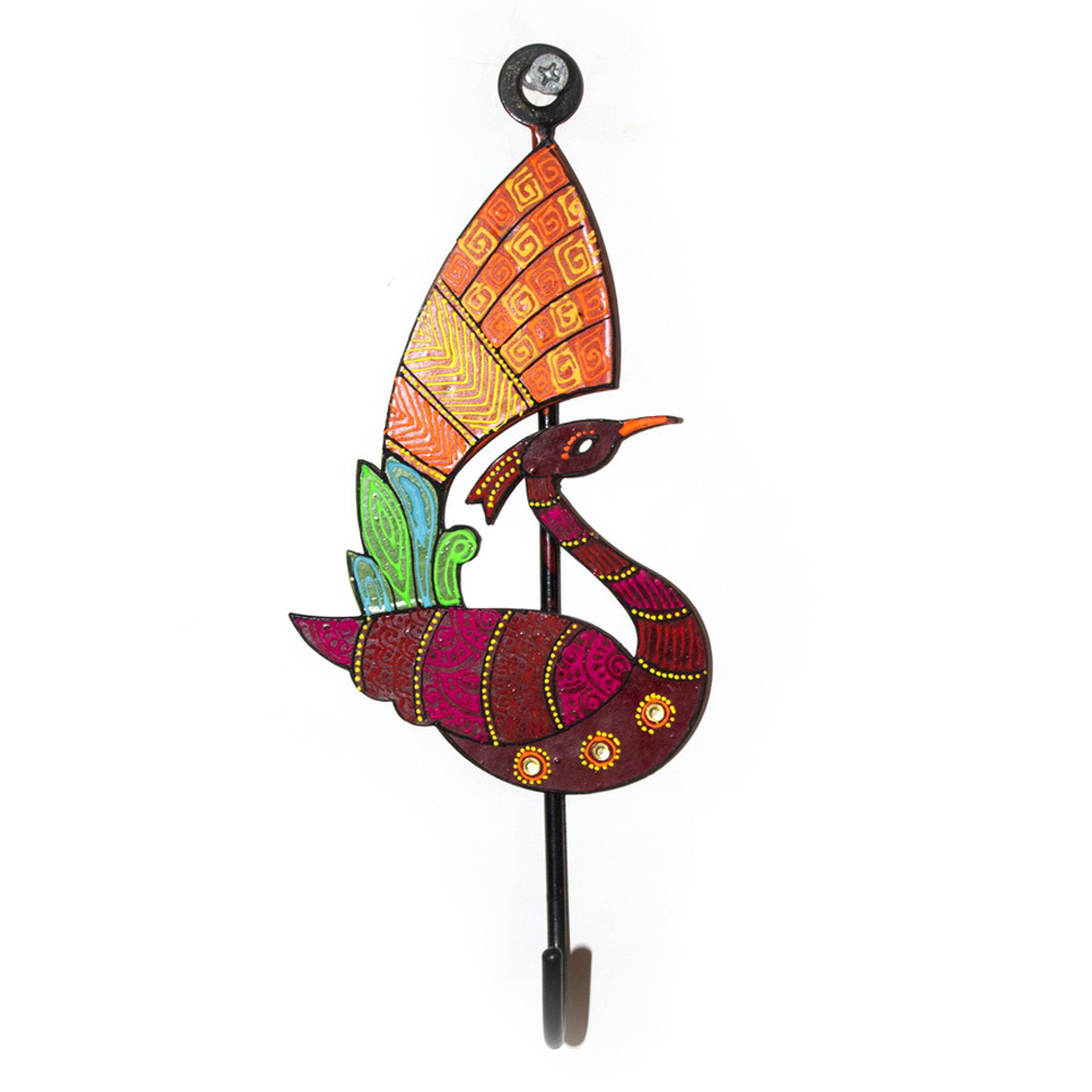 Introduce graceful Indian symbolism into your interiors with our Handpainted Peacock Design Iron Wall Hook. Inspired by the peacockIndias national bird and a symbol of beauty, grace, and prosperitythis decorative wall hook is meticulously handpainted with vibrant folk patterns and fine detailing. Crafted from sturdy iron, it combines visual elegance with dependable everyday utility. Packed & quality-checked by Indianshelf.
