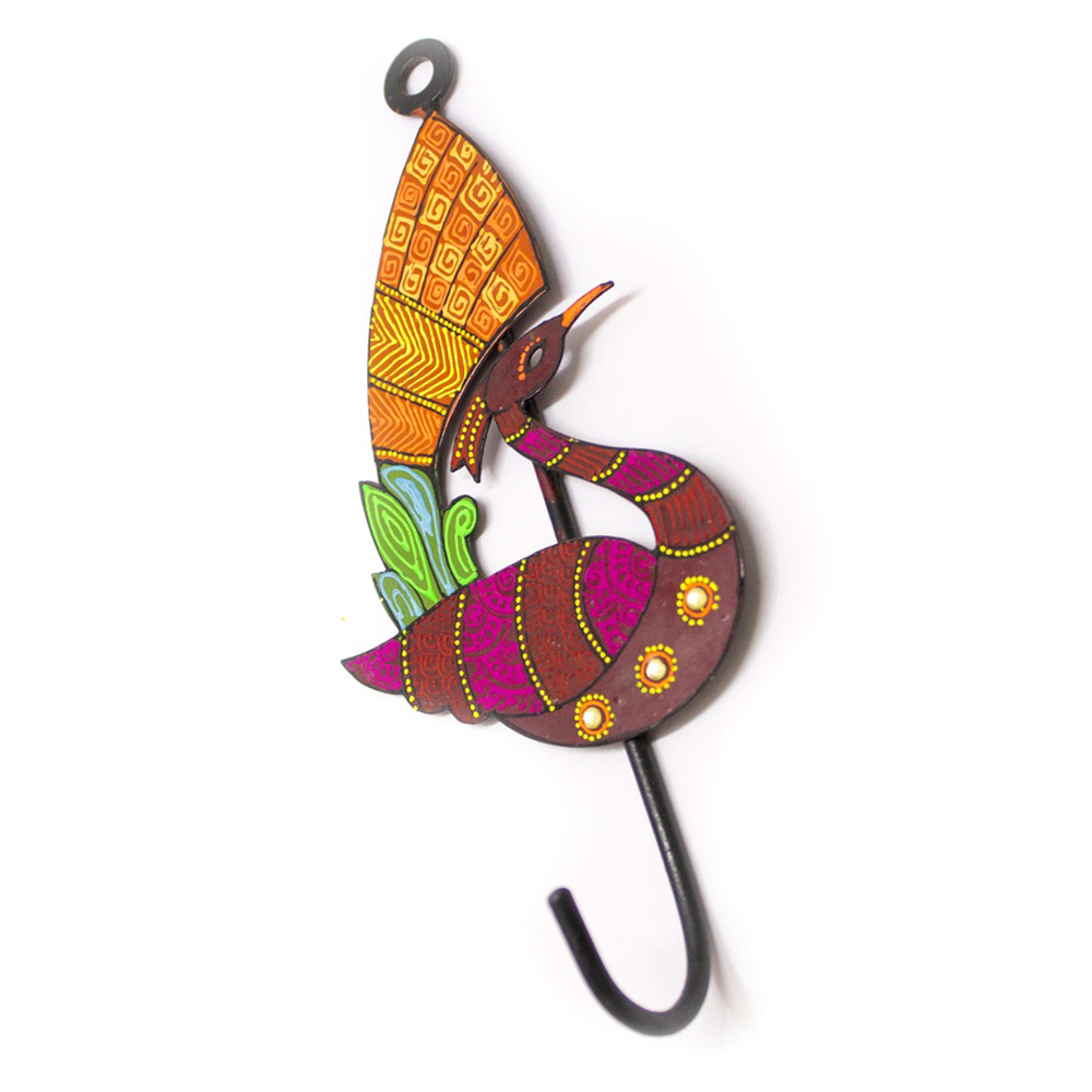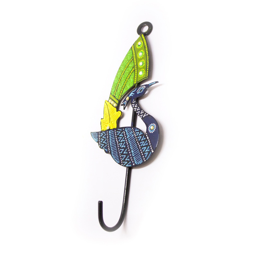 This handpainted peacock wall hook merges artistic expression with functional strength, making it a distinctive accent for art-inspired homes.