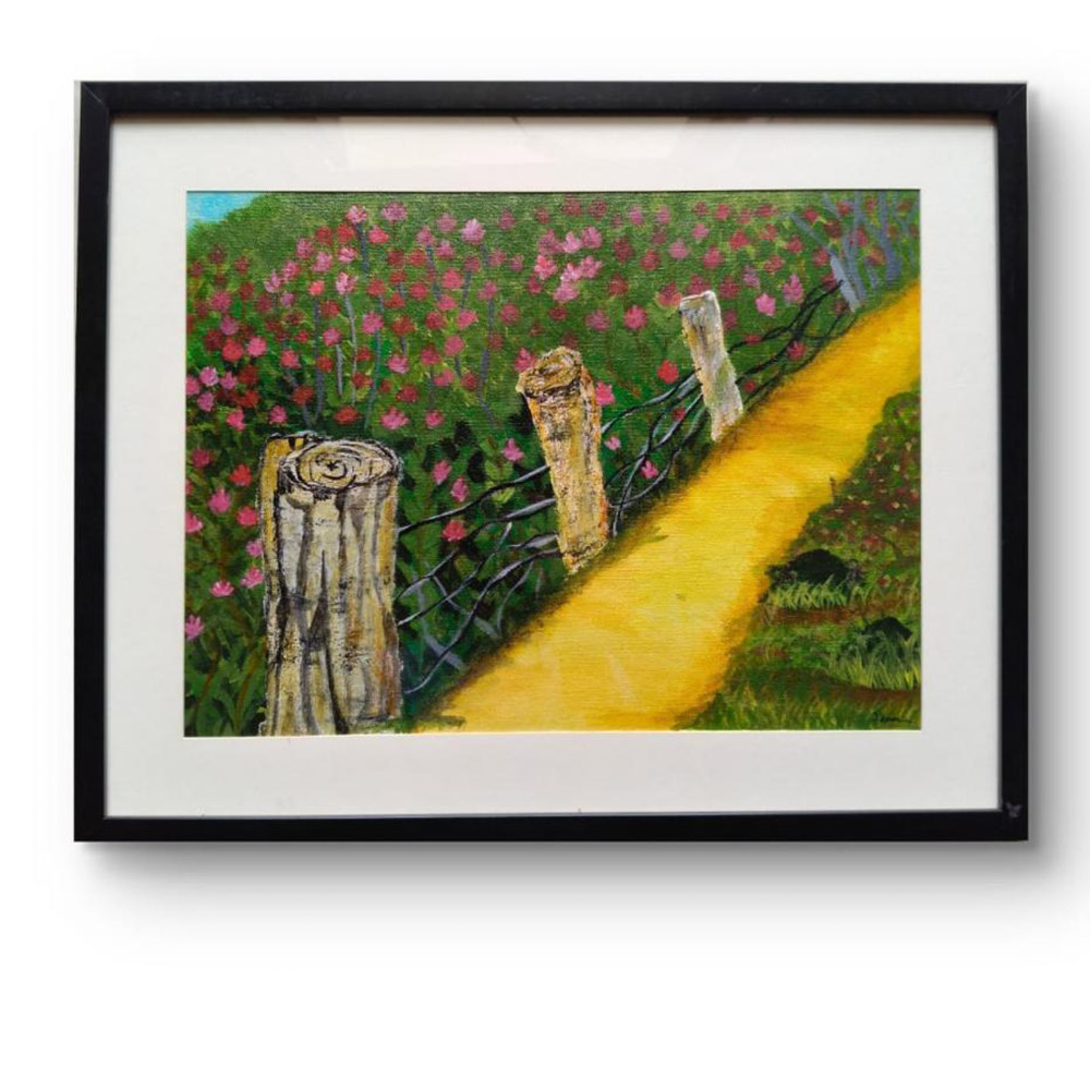 Experience the joyous energy of this handcrafted canvas. The interplay of colours and textures invites you to pause and savour its artistry, making every glance feel like a new discovery.