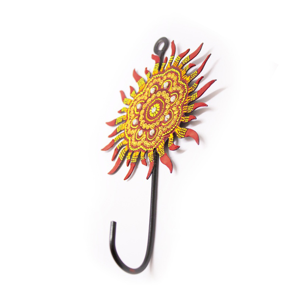 This handpainted sun wall hook blends symbolic Indian artistry with practical strength, making it a striking accent for art-led and culturally inspired spaces.