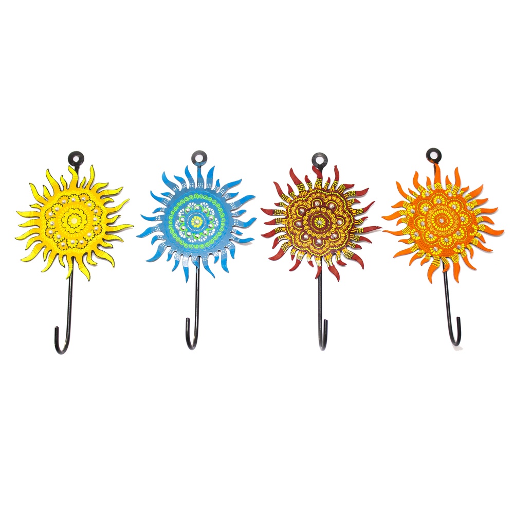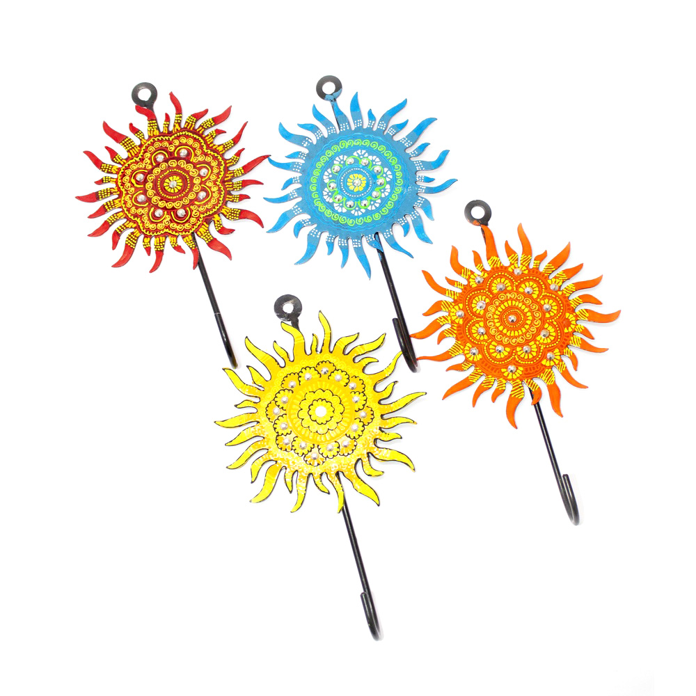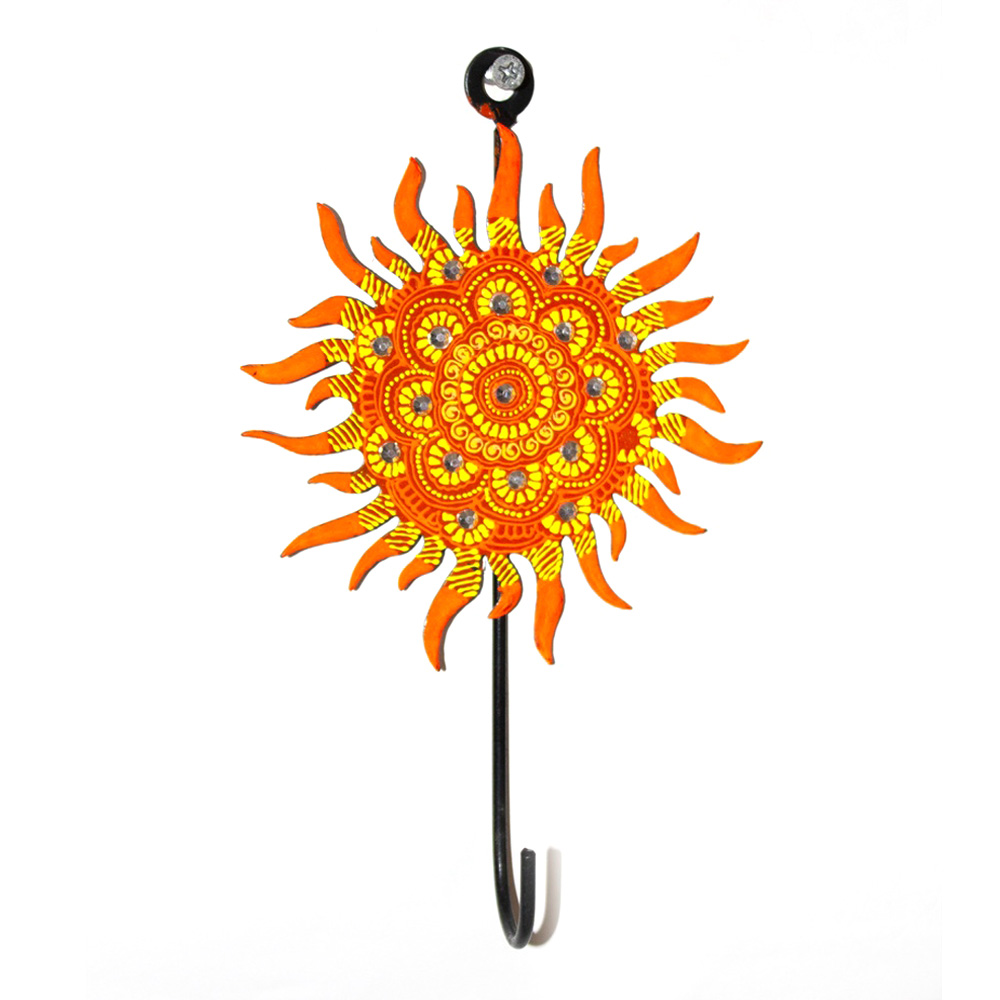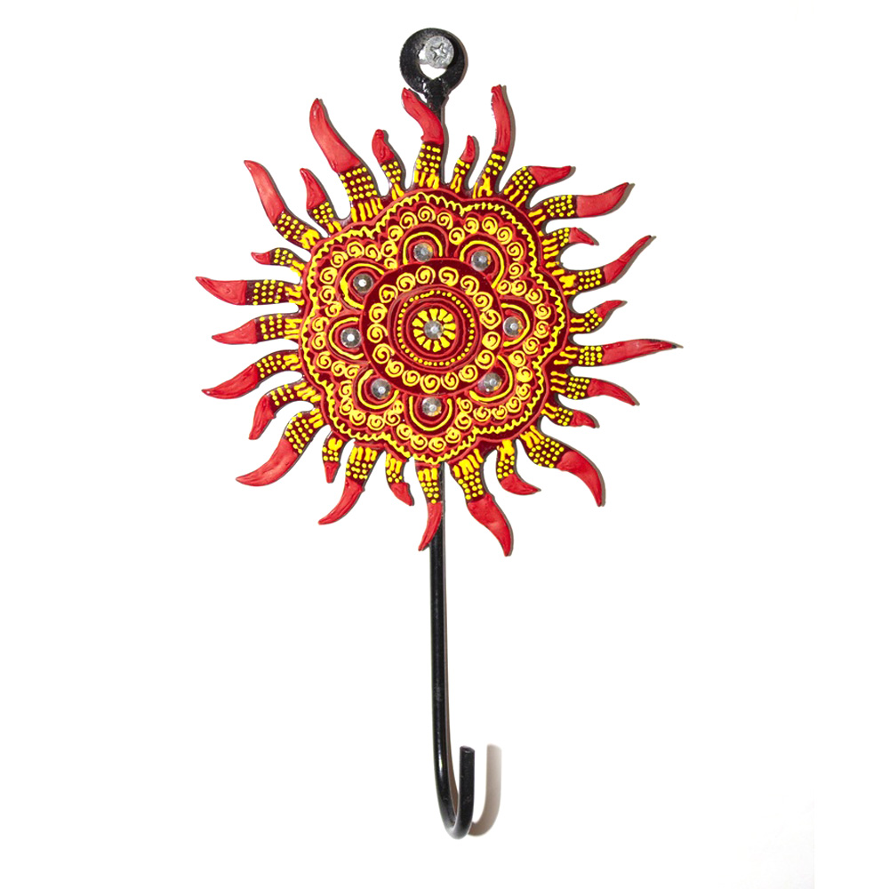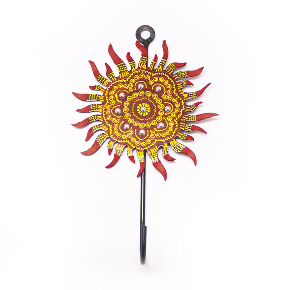 Infuse warmth and positive energy into your interiors with our Handpainted Sun Design Iron Wall Hook. Inspired by traditional Indian sun motifs symbolising vitality, strength, and prosperity, this decorative wall hook is meticulously handpainted with intricate folk patterns and vibrant colours. Crafted from durable iron, it is designed to offer both visual impact and dependable everyday utility. Packed & quality-checked by Indianshelf.
