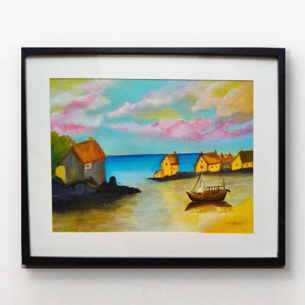 Experience the joyous energy of this handcrafted canvas. The interplay of colours and textures invites you to pause and savour its artistry, making every glance feel like a new discovery.