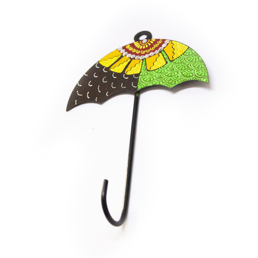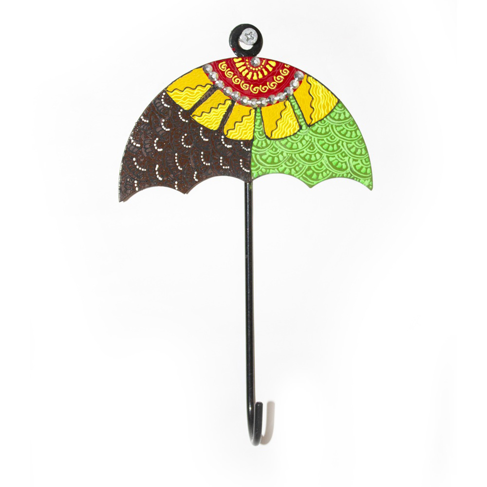 Add a touch of vibrant Indian artistry to your walls with our Handpainted Umbrella Design Iron Wall Hook. Inspired by traditional parasol motifs, this decorative wall hook is meticulously handpainted by skilled artisans using rich colors, intricate patterns, and delicate detailing. Crafted from durable iron, it balances artistic expression with everyday functionality. Packed & quality-checked by Indianshelf.