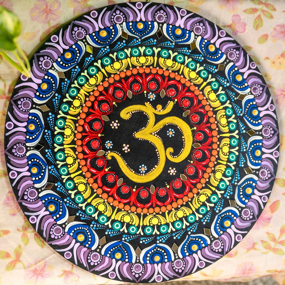 - Central Om motif enriched with decorative mirror work
