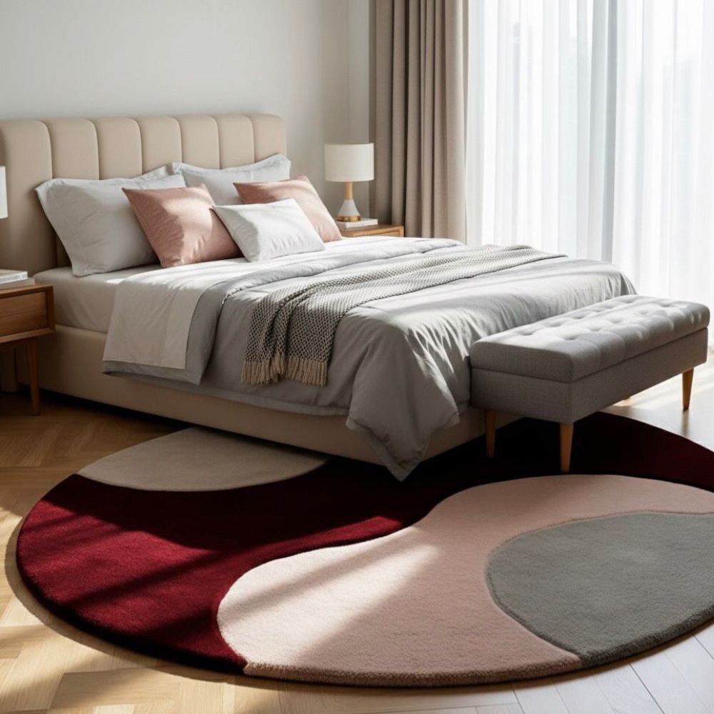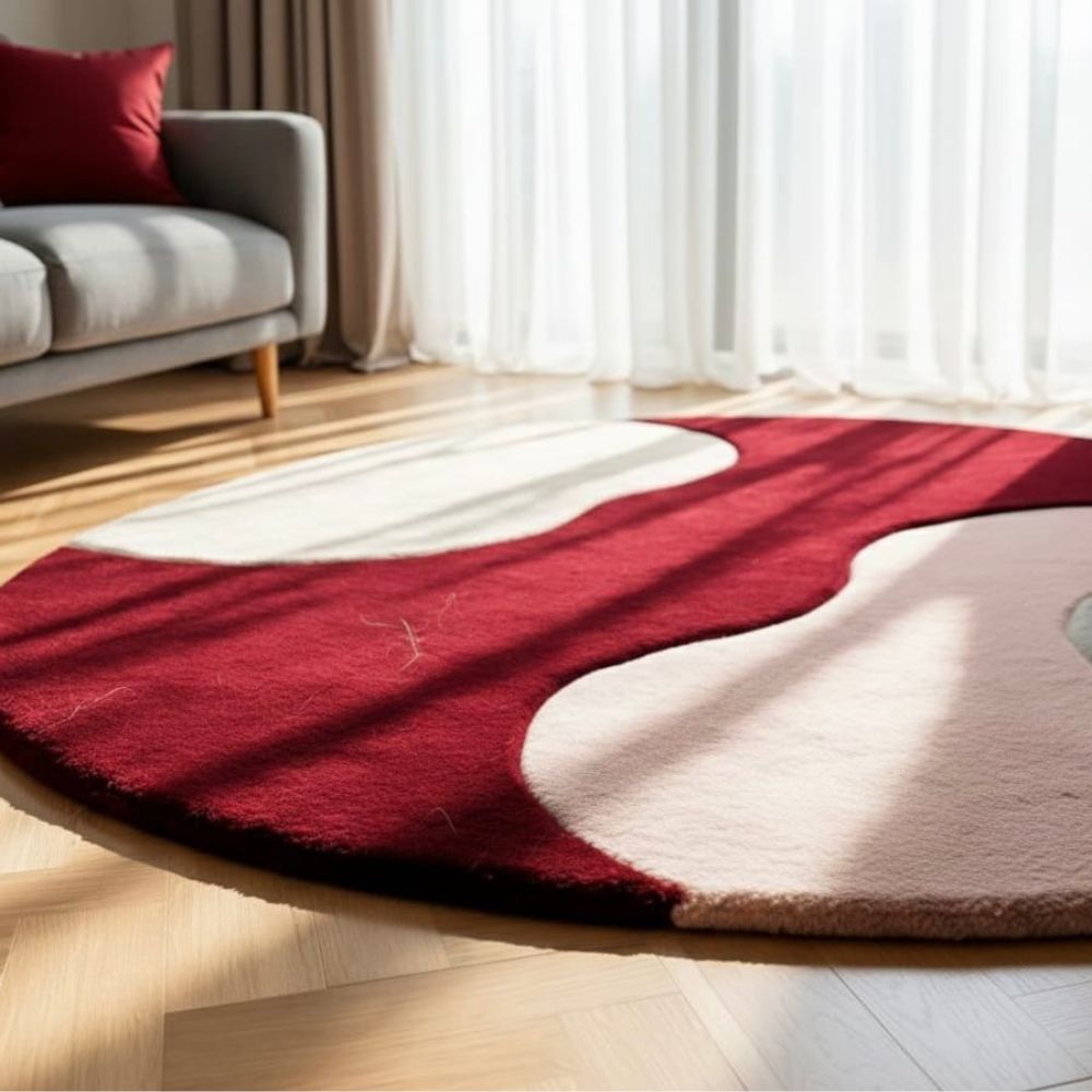The Crimson Swirl Harmony Rug blends rich crimson tones with soft neutral shades in an elegant abstract pattern that warms and elevates any modern home. Hand-tufted from premium wool, this rug offers plush comfort, refined texture, and dependable everyday durability. Each piece is carefully packed and quality-checked by Indianshelf.