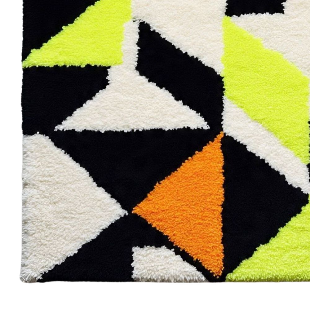 Modern Triangle Fusion Rug is lovingly made from wool with multicolor hues, offering a minimalist motif that suits a range of décor styles and personalities. Packed & quality-checked by Indianshelf.